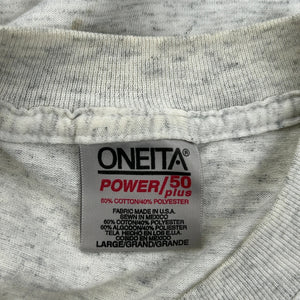 Dog Print Oneita Single Stitch T-Shirt - Large Grey Cotton Blend