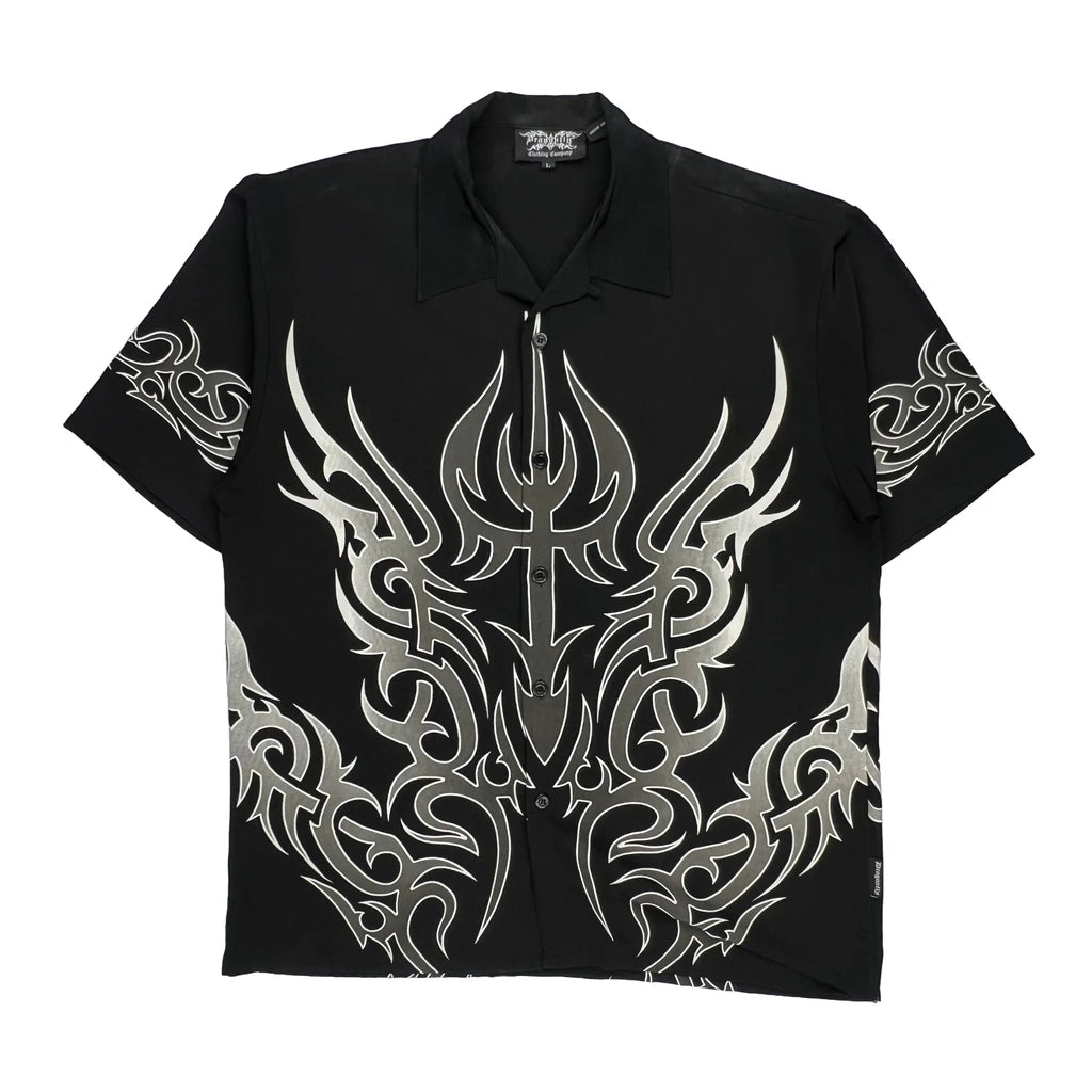 Black Shirt With Silver Tribal Graphic Design