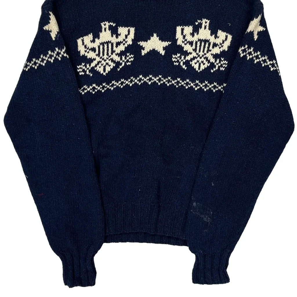 Eagle And Star Pattern Polo By Ralph Lauren Graphic Jumper - XL Navy Cotton