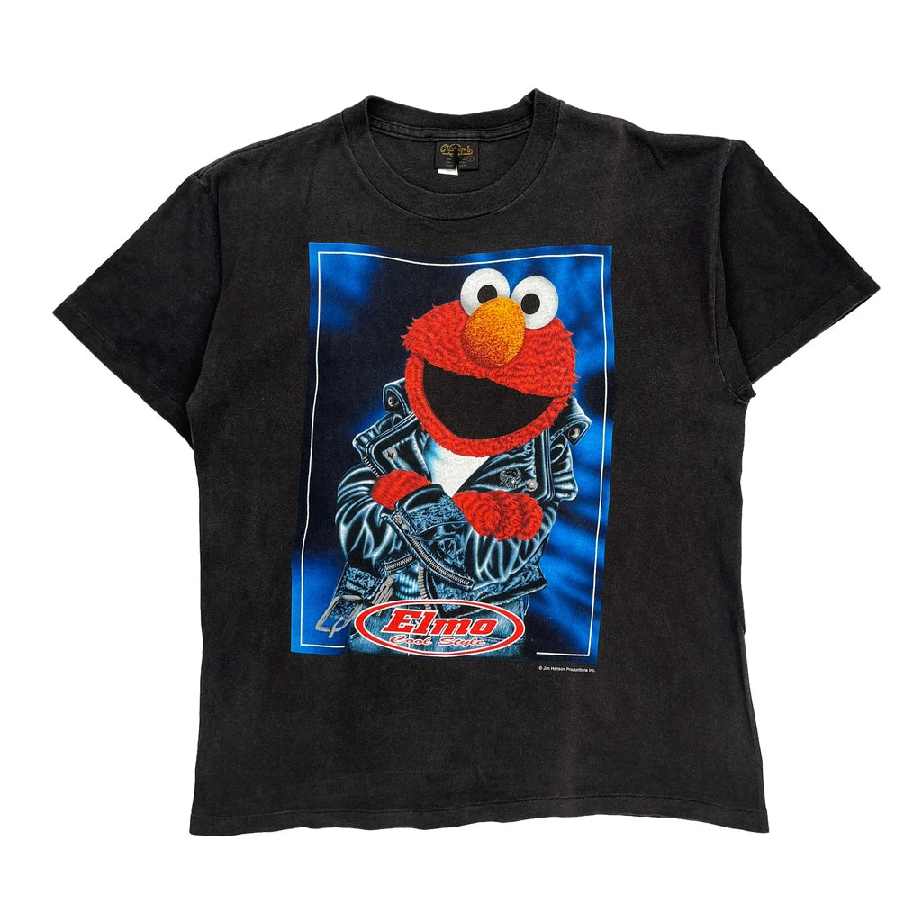 Elmo Graphic T-Shirt With Leather Jacket Design