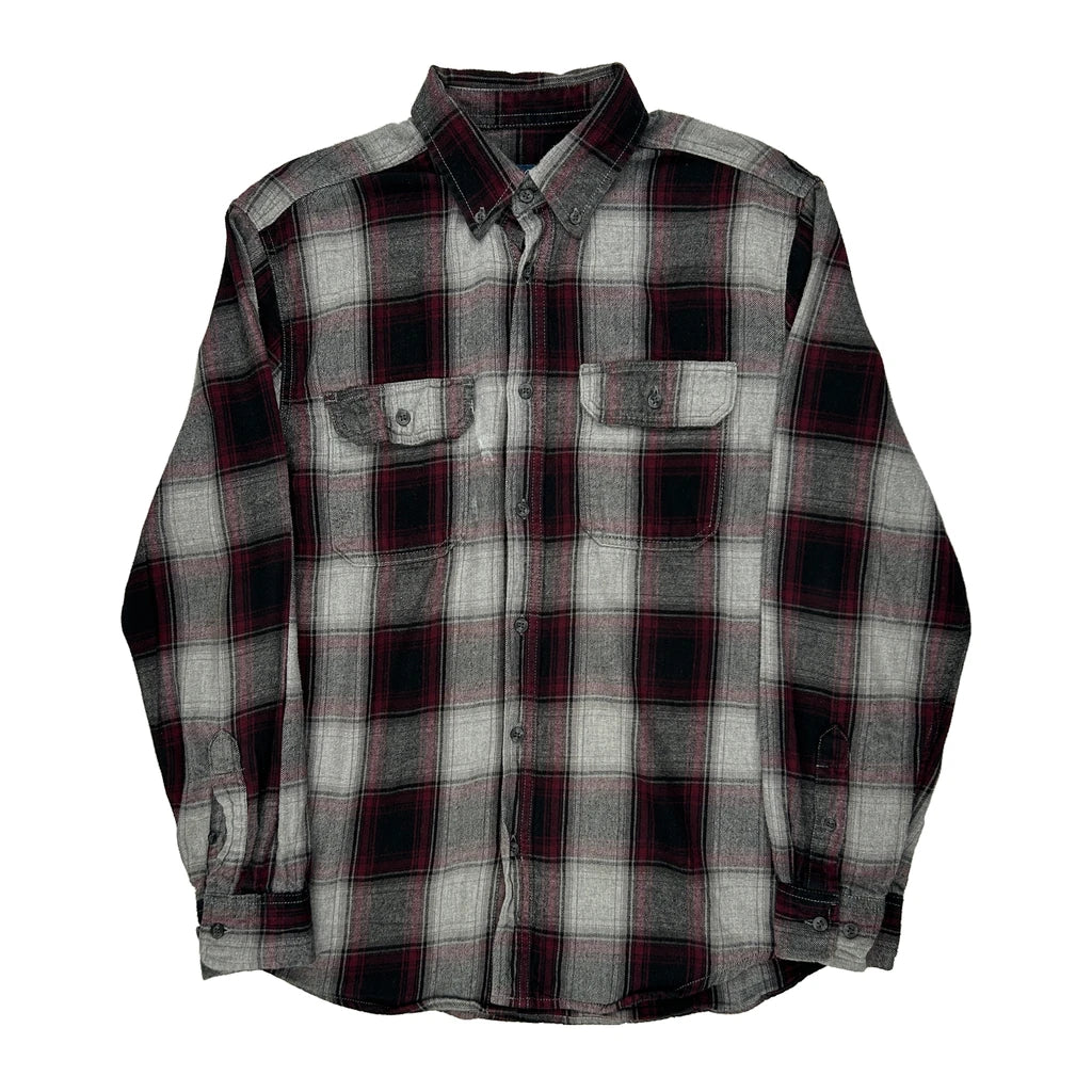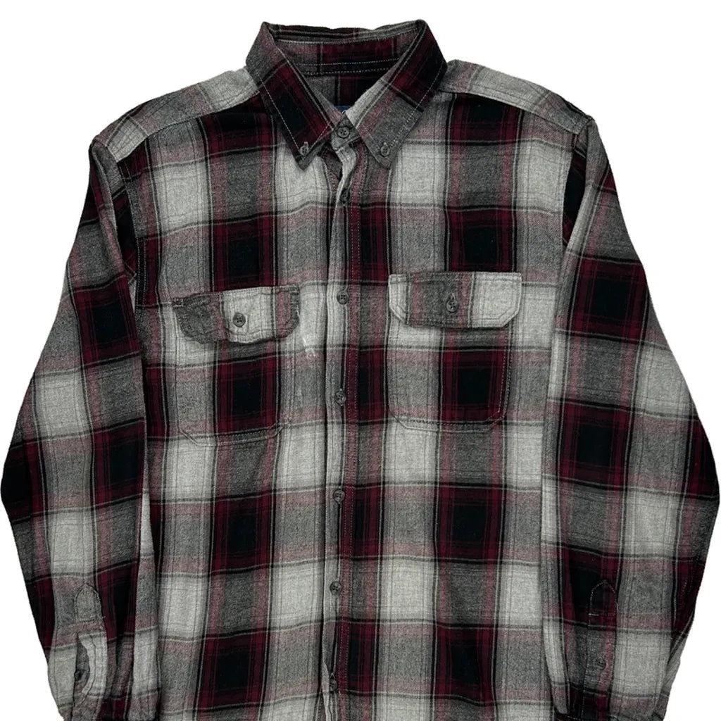 Faded Glory Checked Flannel Shirt - Medium Grey Cotton