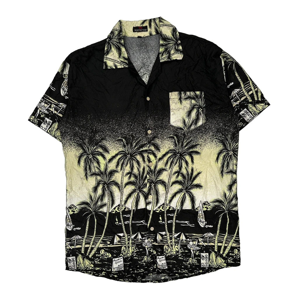 Fight The Wolf Graphic Hawaiian Shirt - Large Black Polyester
