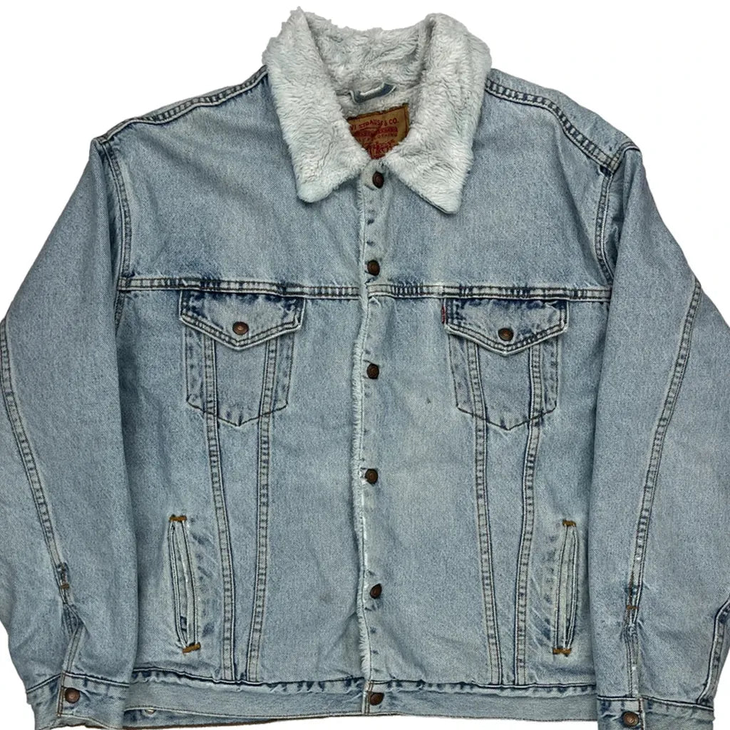 Fleece Lined Levis Denim Jacket - XL Light Wash Cotton