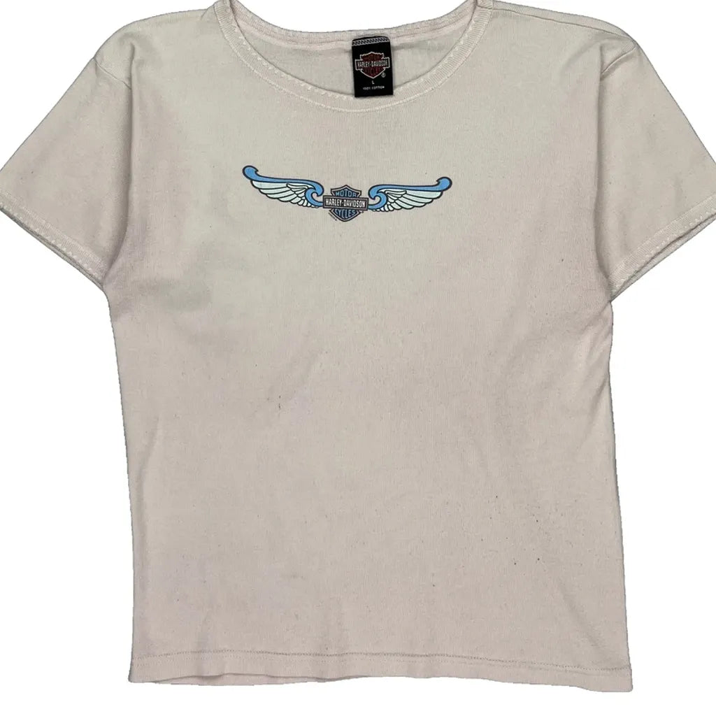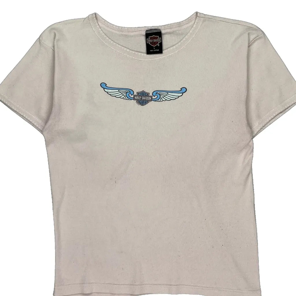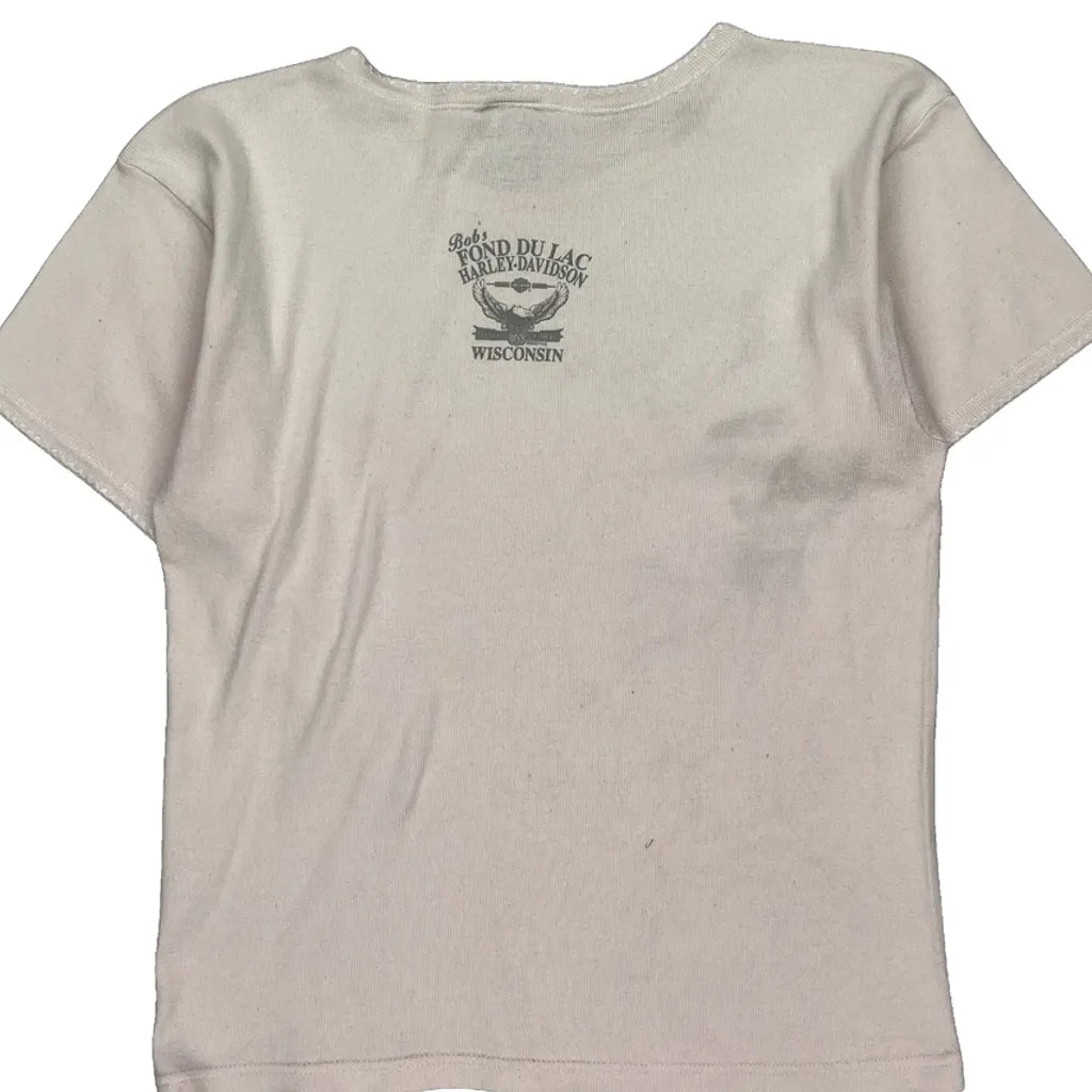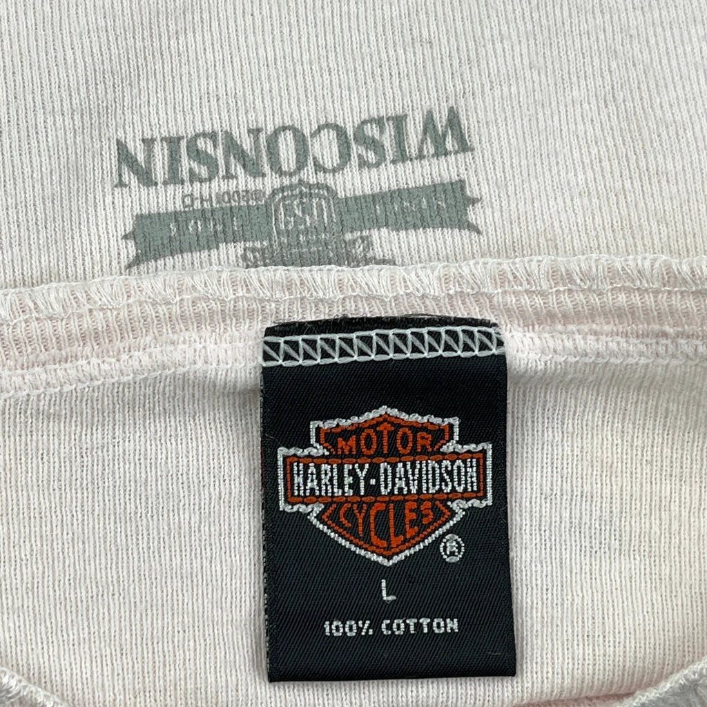 Fond Du Lac Wisconsin Harley Davidson Graphic T-Shirt - Large Cream Cotton