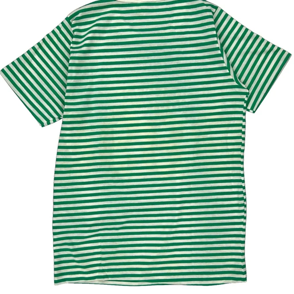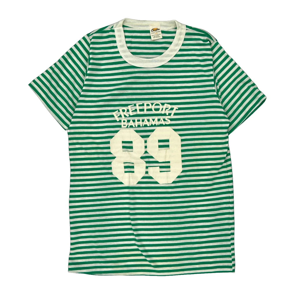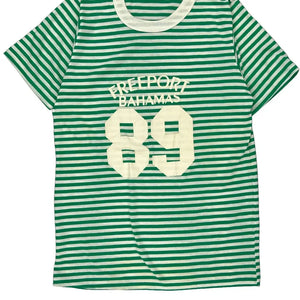 Green And White Striped T-Shirt With Freeport Bahamas 89 Print