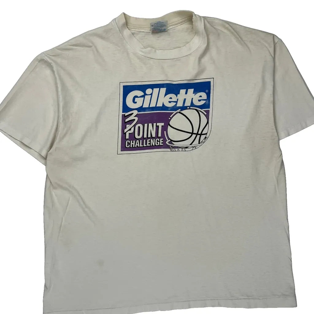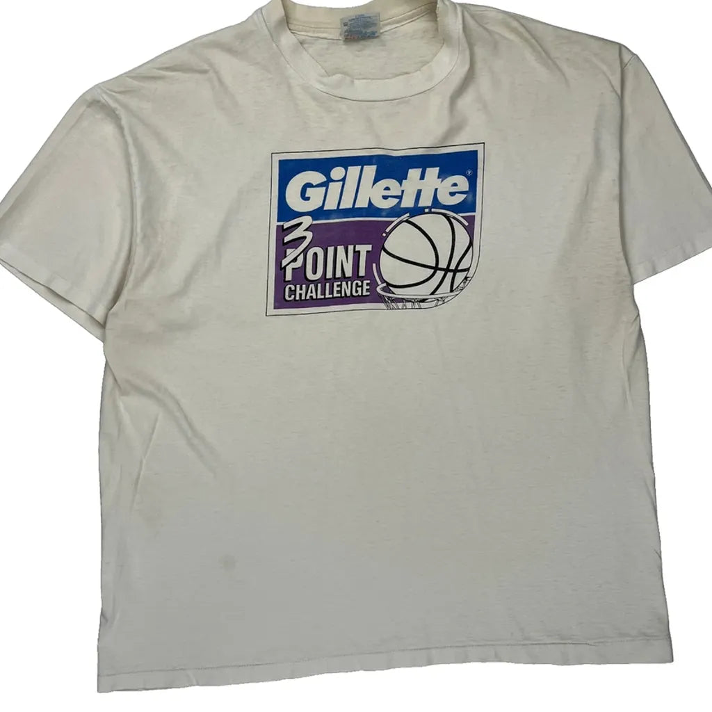 Gillette 3 Point Challenge Hanes Graphic T-Shirt - XL White Cotton