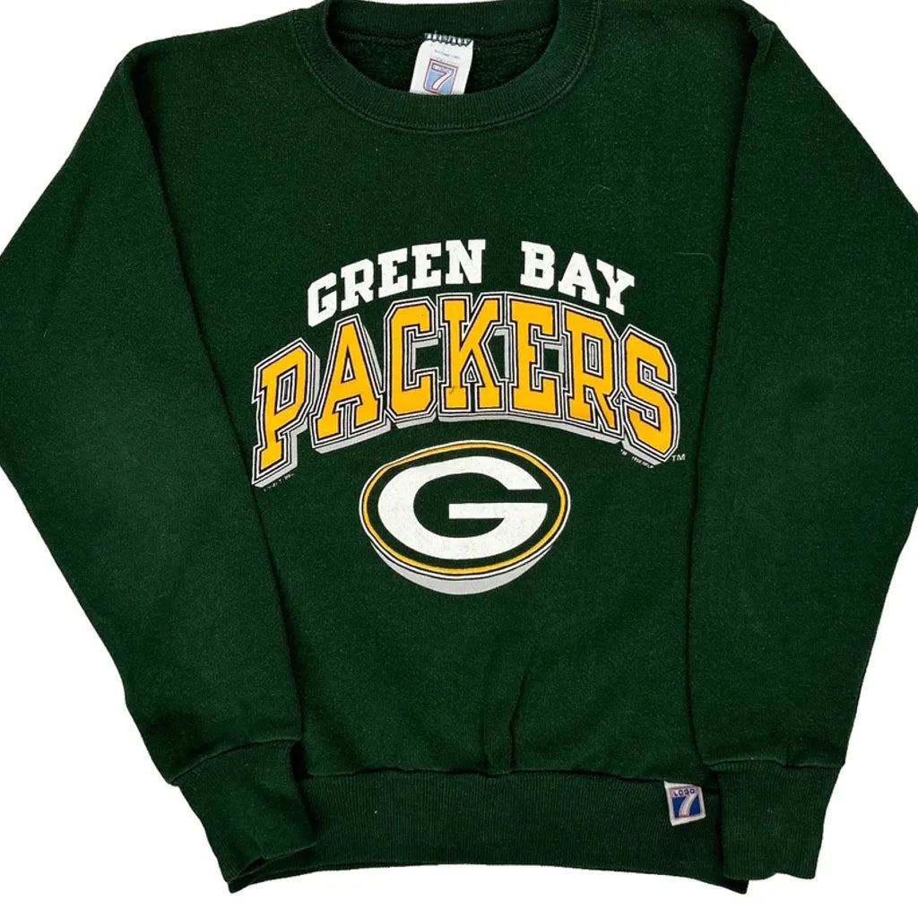 Green Bay Packers, Age 10-12 Logo 7 Football Long Sleeve T-Shirt - Medium Green Cotton