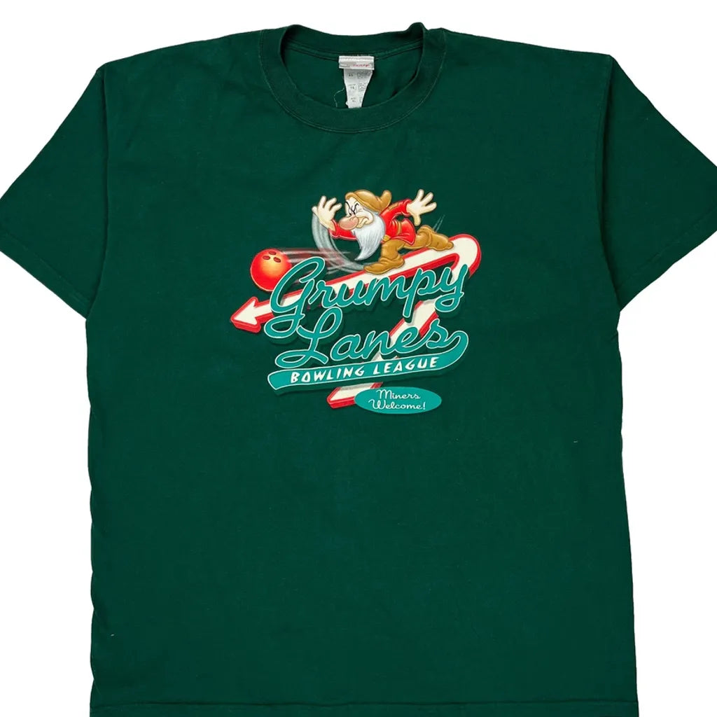 Grumpy Lanes Bowling League Disney Cartoon T-Shirt - XL Green Cotton