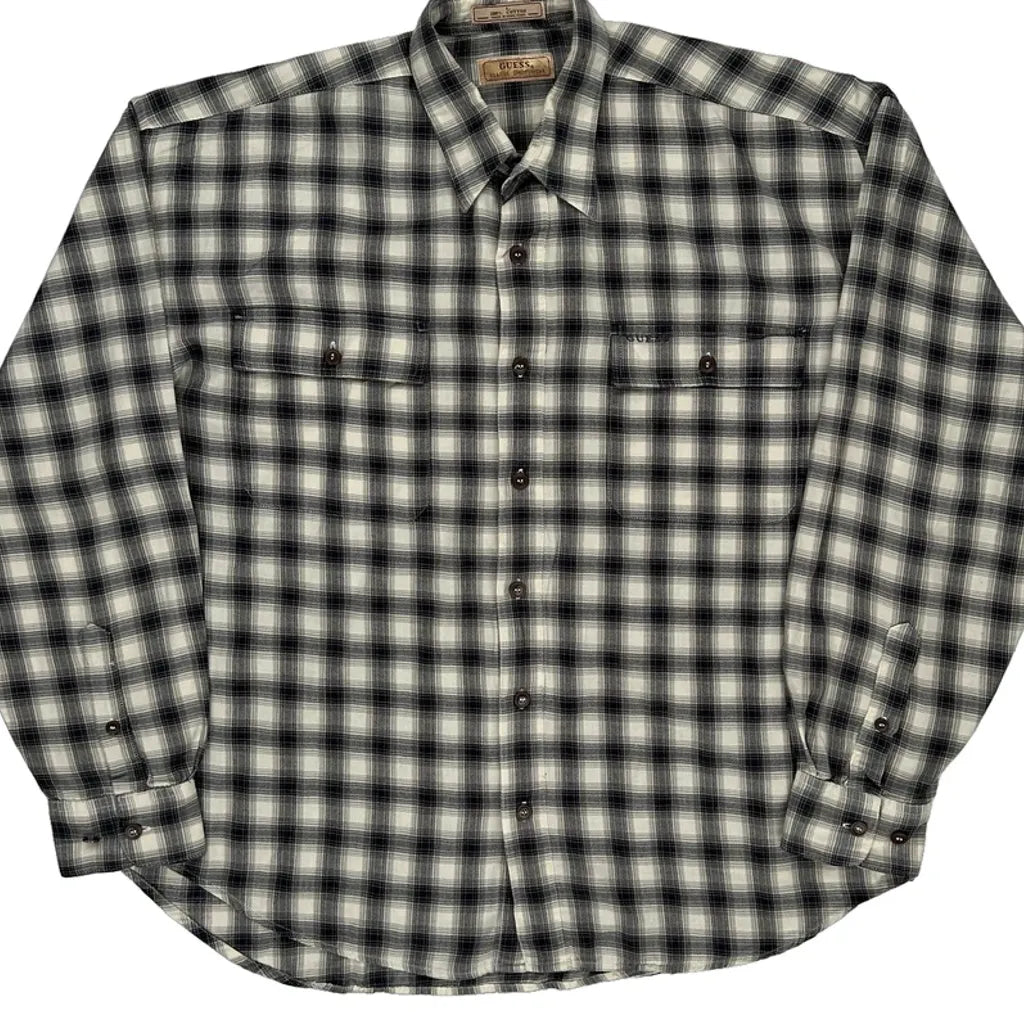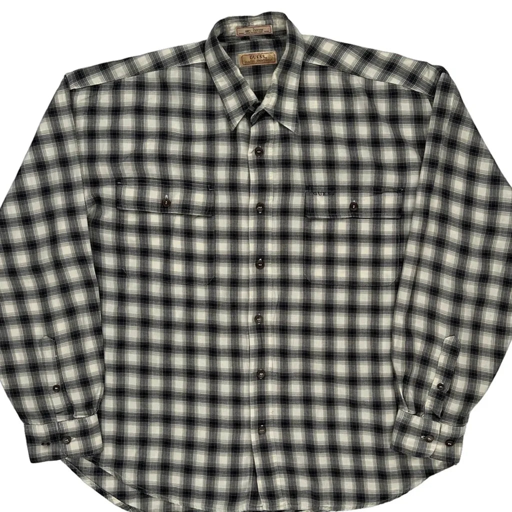 Guess Checked Shirt - Large Black & White Cotton