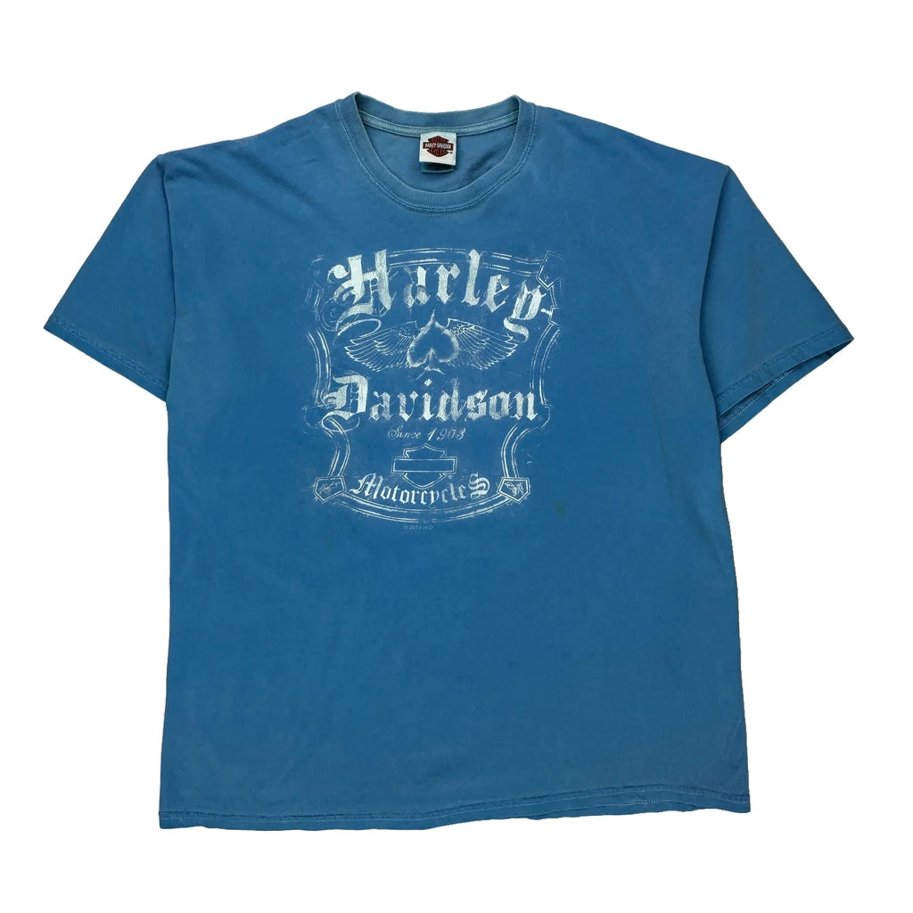 Hall'S 50 Years Anniversary Harley Davidson Graphic T-Shirt - XL Blue Cotton