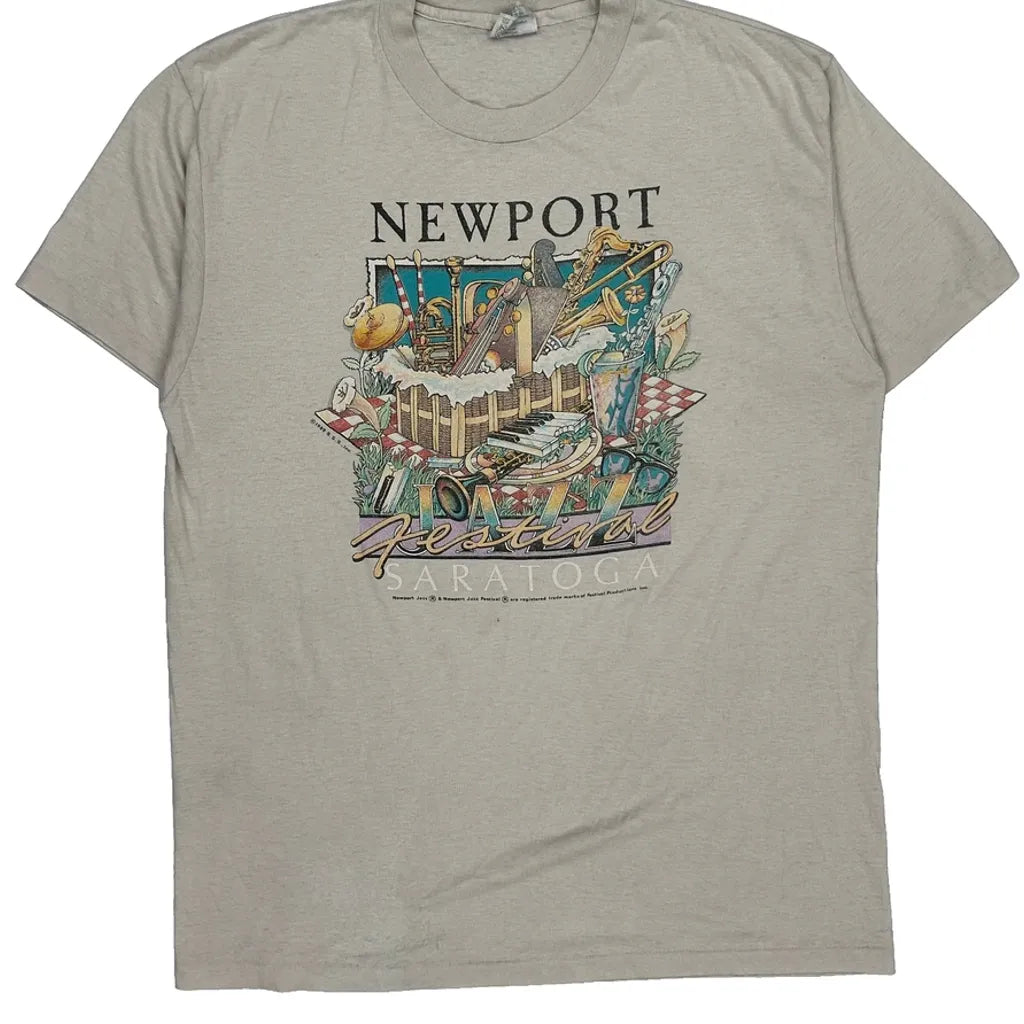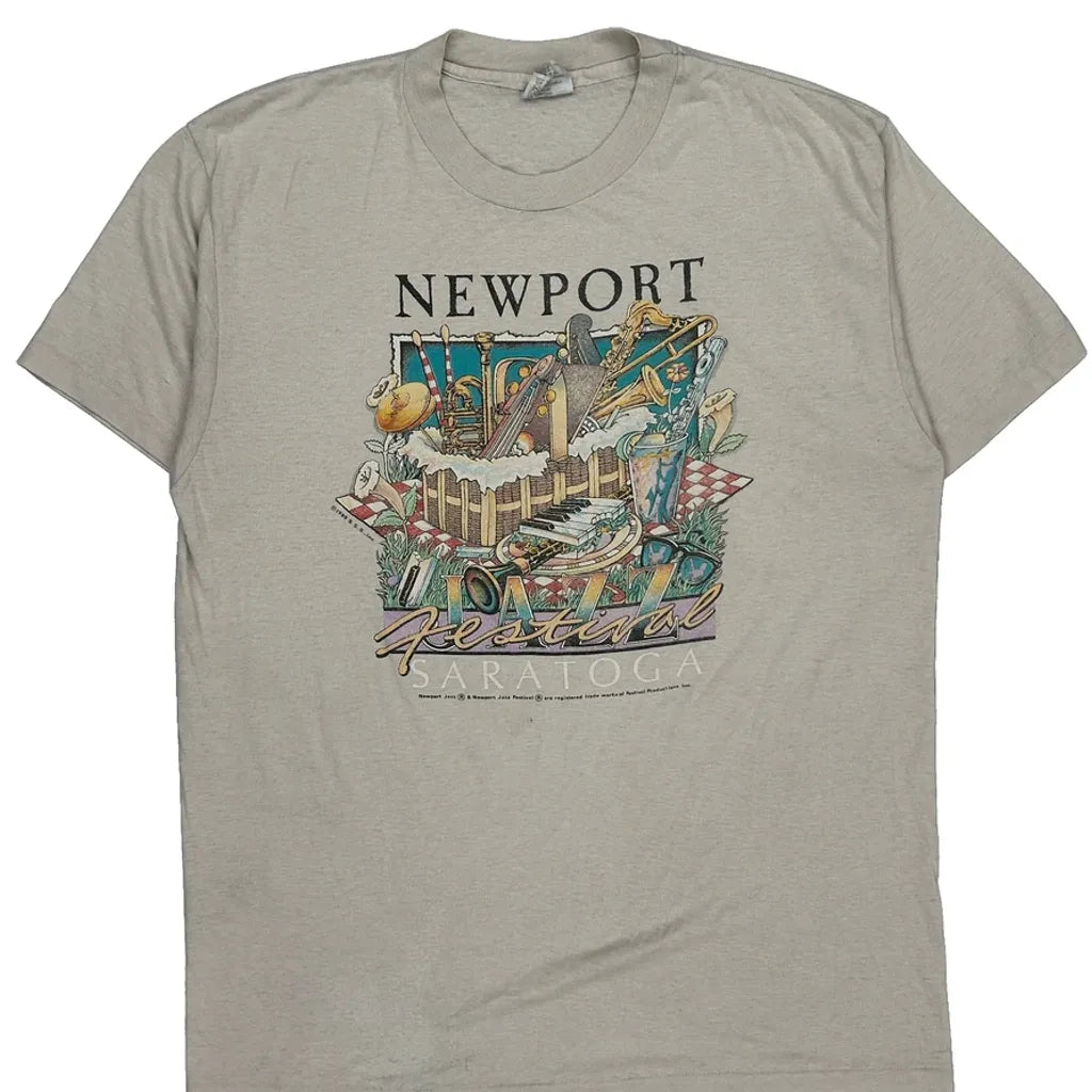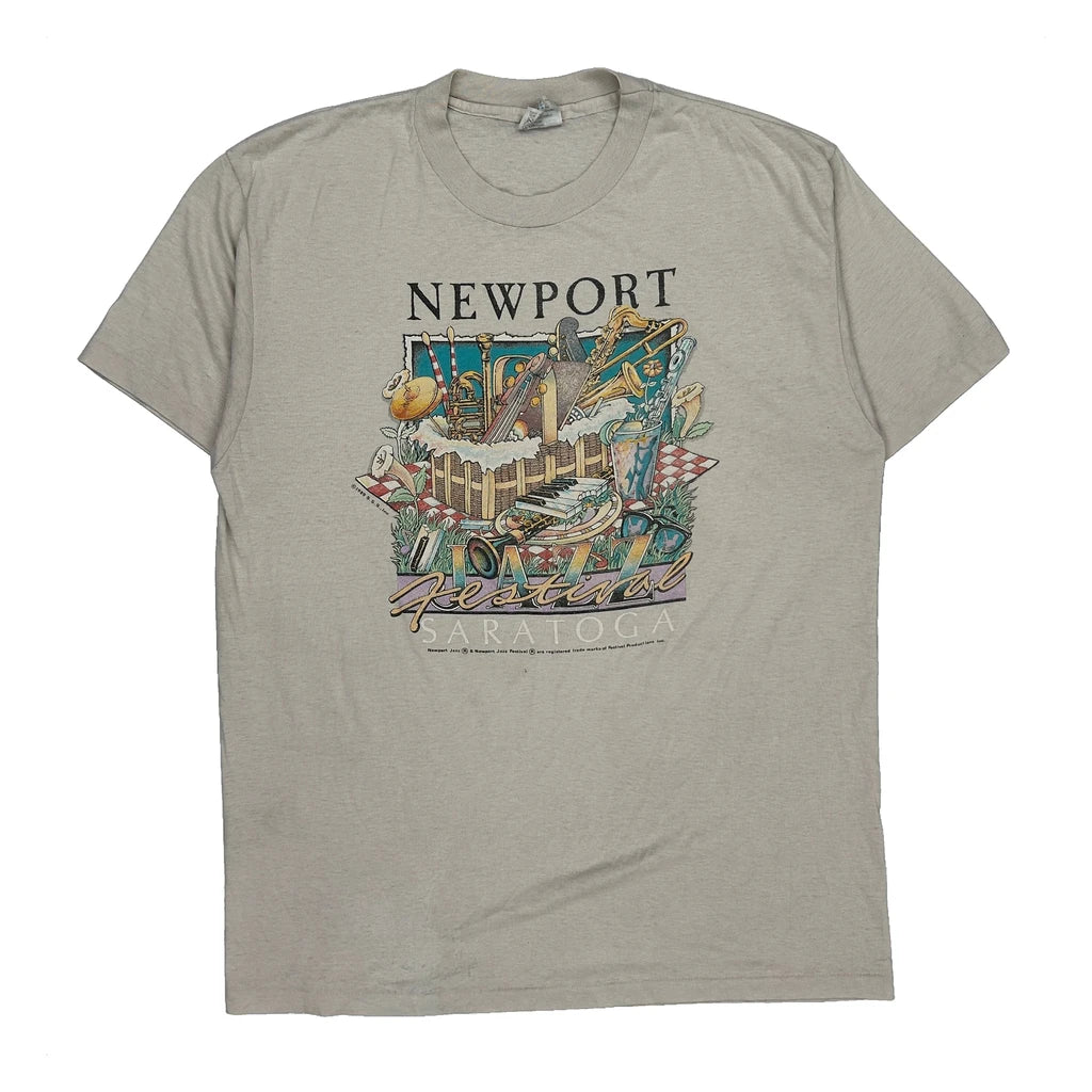Vintage Newport Jazz Festival T-Shirt With Some Visible Wear.
