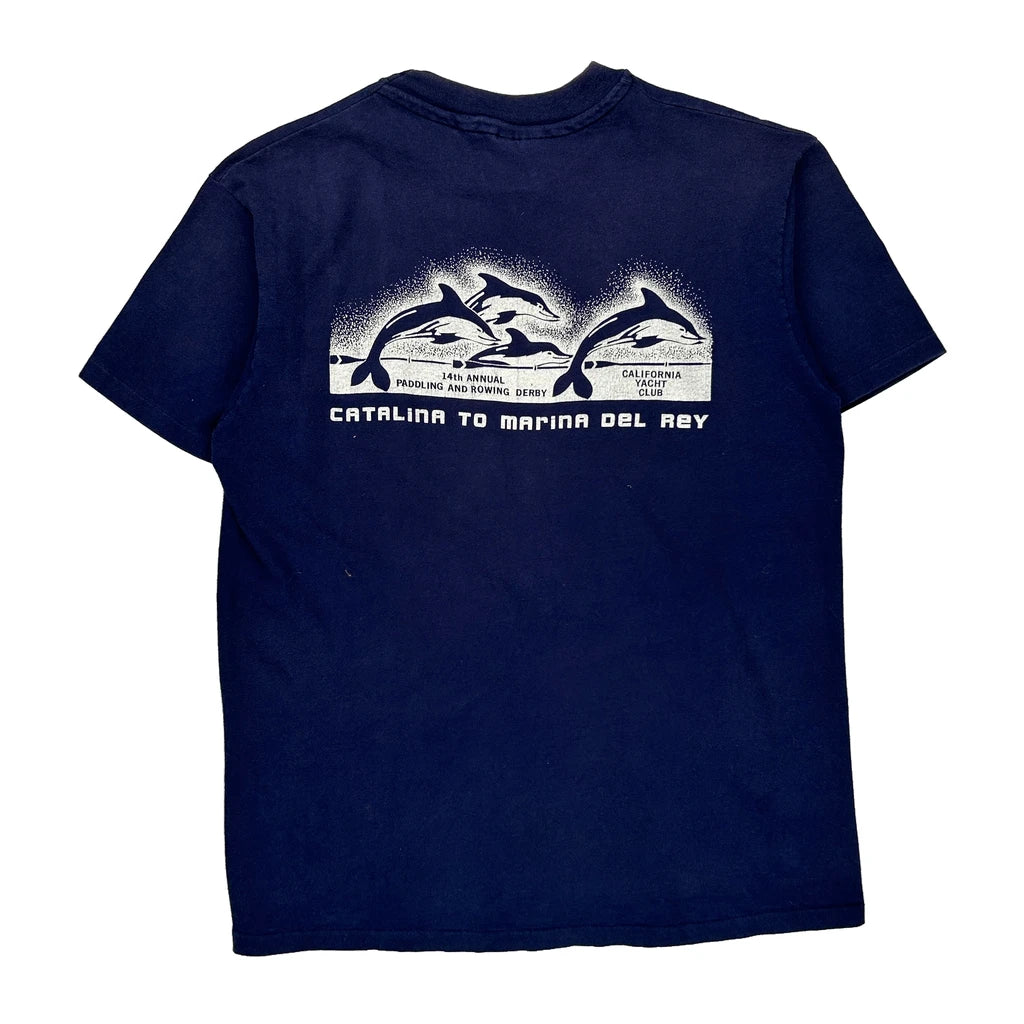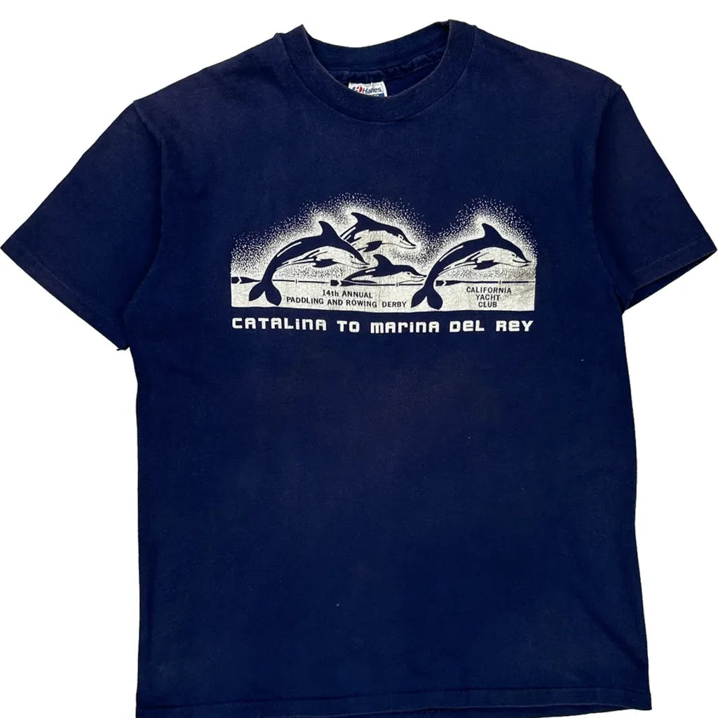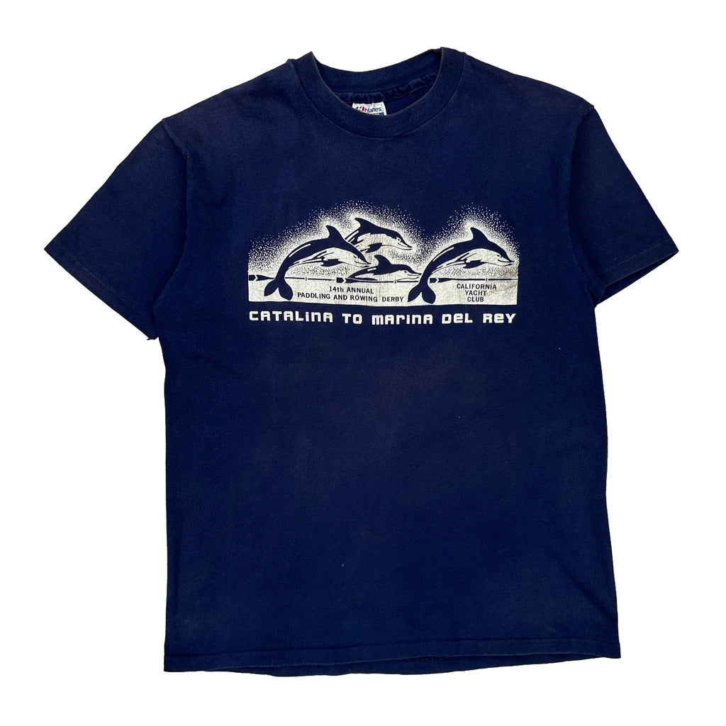 Hanes Single Stitch T-Shirt - XL Blue Cotton