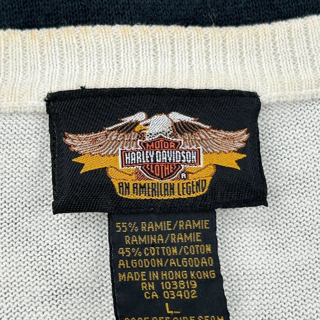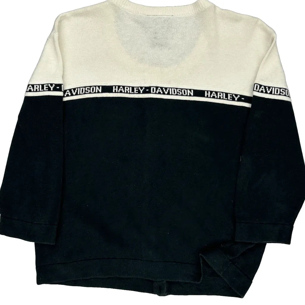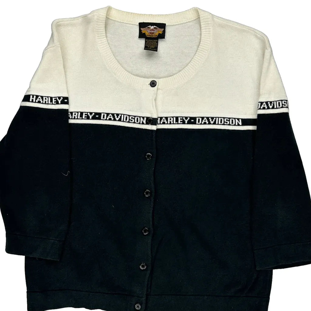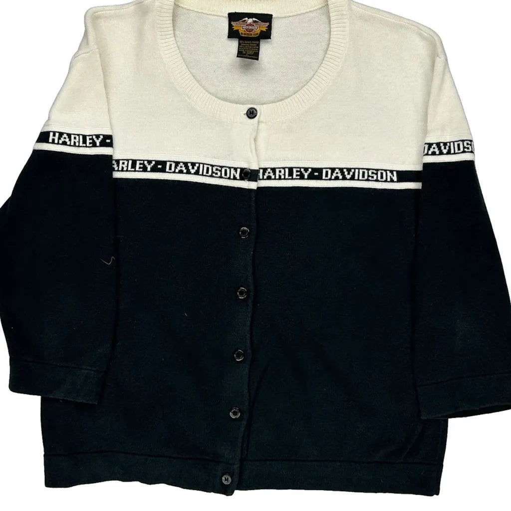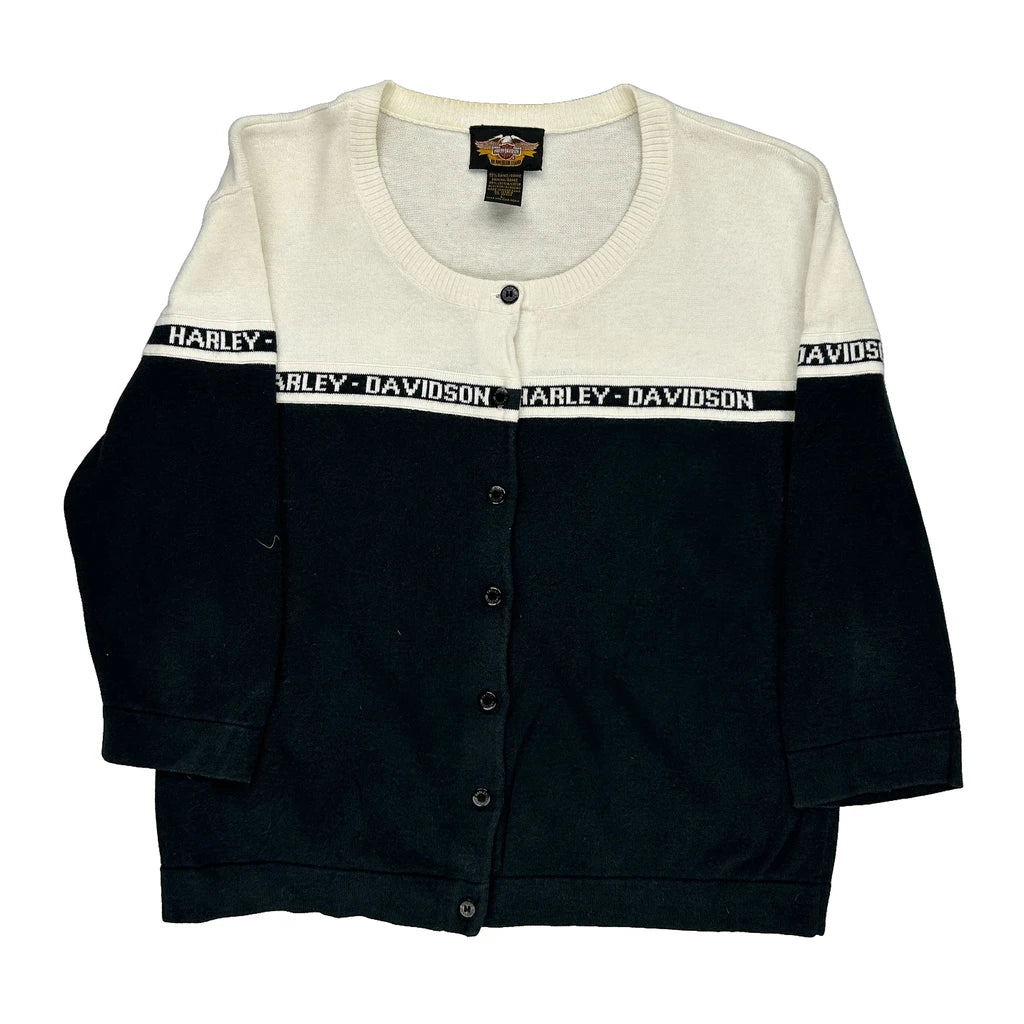 Harley Davidson Spellout Cardigan - Large Black & White Cotton