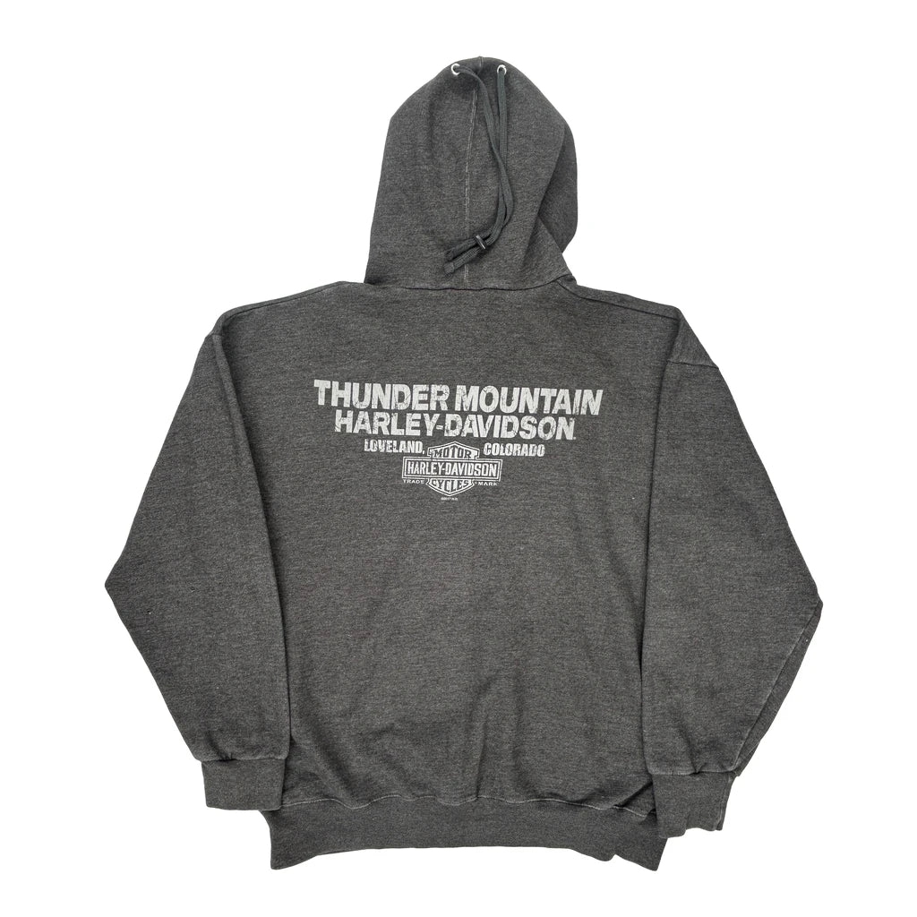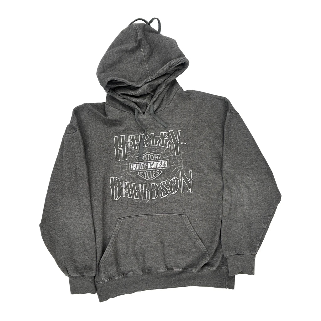 Harley Davidson Graphic Hoodie - Large Grey Cotton Blend