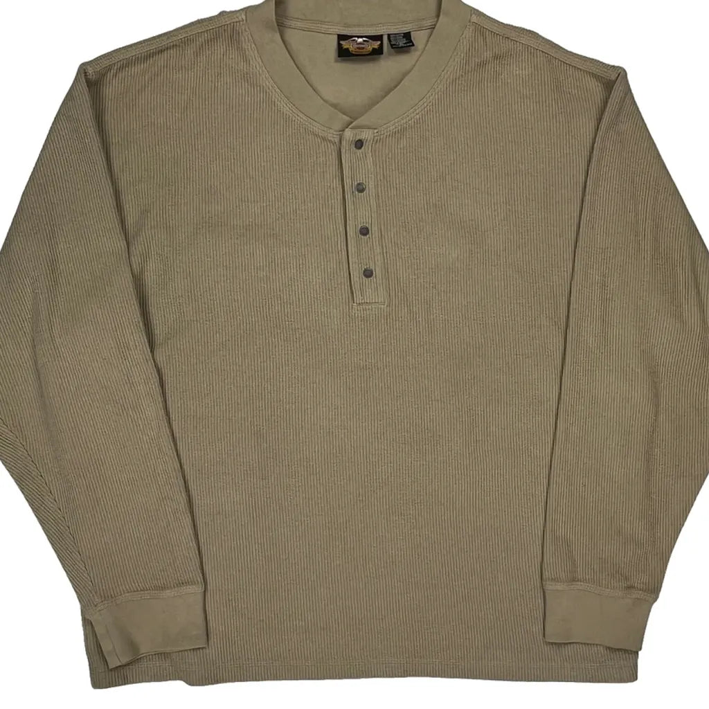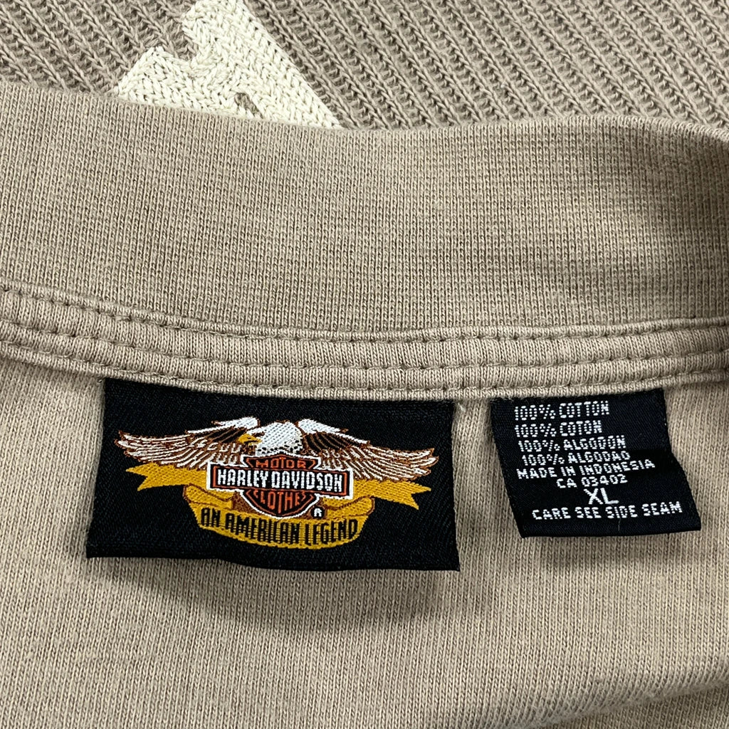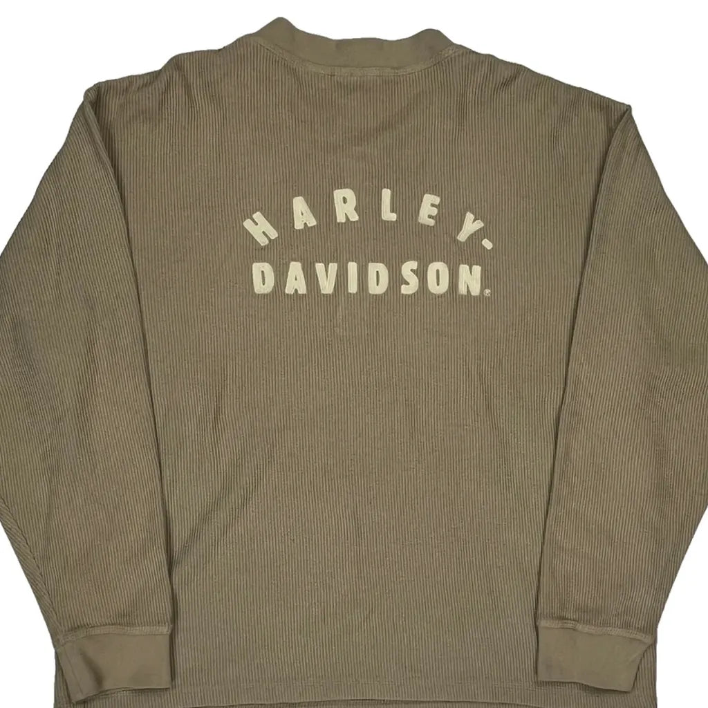 Harley Davidson Long Sleeve T-Shirt - XL Beige Cotton