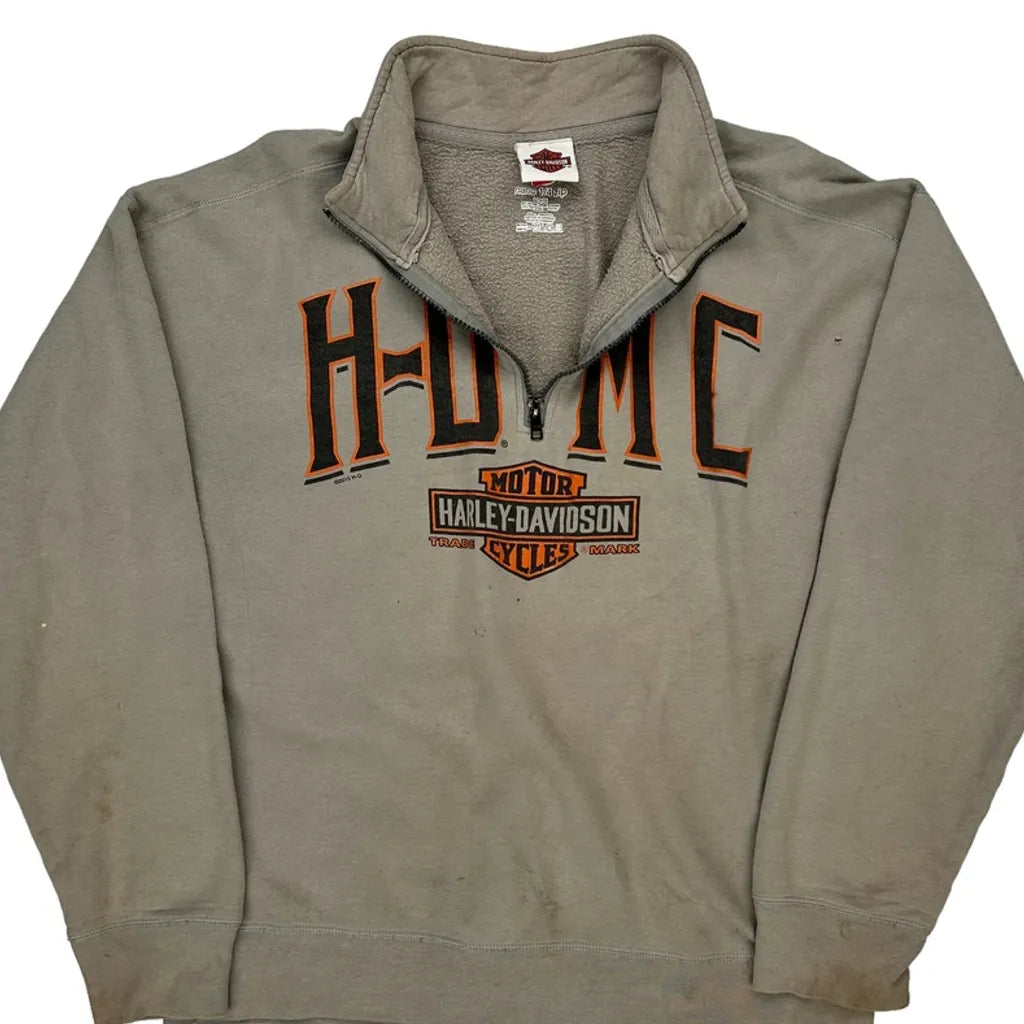Harley Davidson Graphic Long Sleeve T-Shirt - Large Grey Cotton Blend