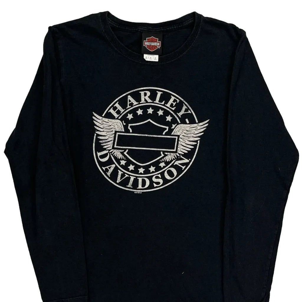Harley Davidson Graphic Long Sleeve T-Shirt - Medium Black Cotton
