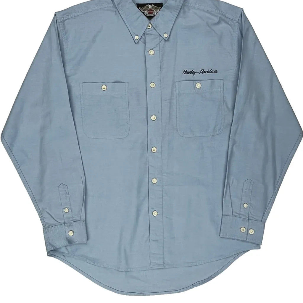 Harley Davidson Shirt - Large Blue Cotton Blend