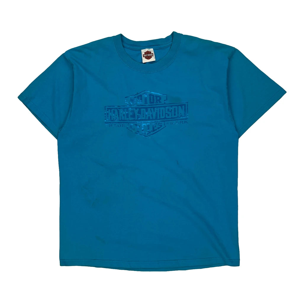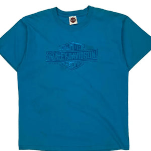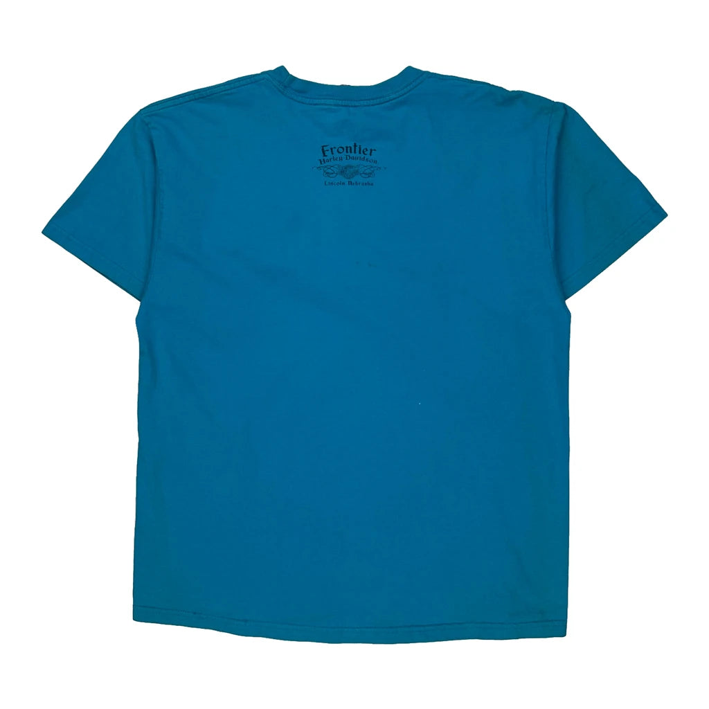 Harley Davidson Graphic T-Shirt - Large Blue Cotton