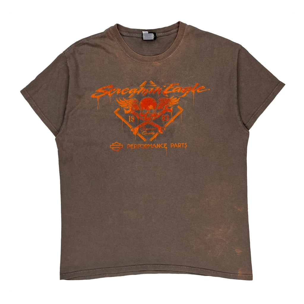 Harley Davidson Graphic T-Shirt - Large Brown Cotton
