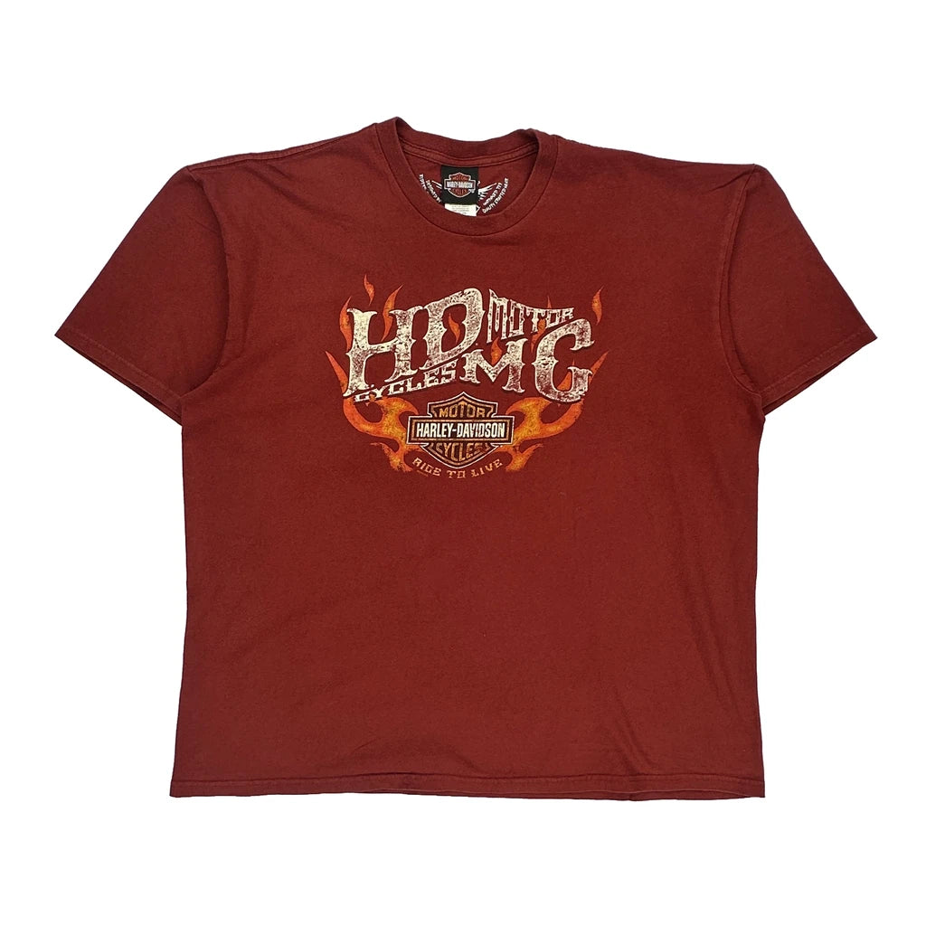 Harley Davidson Graphic T-Shirt - 2XL Red Cotton