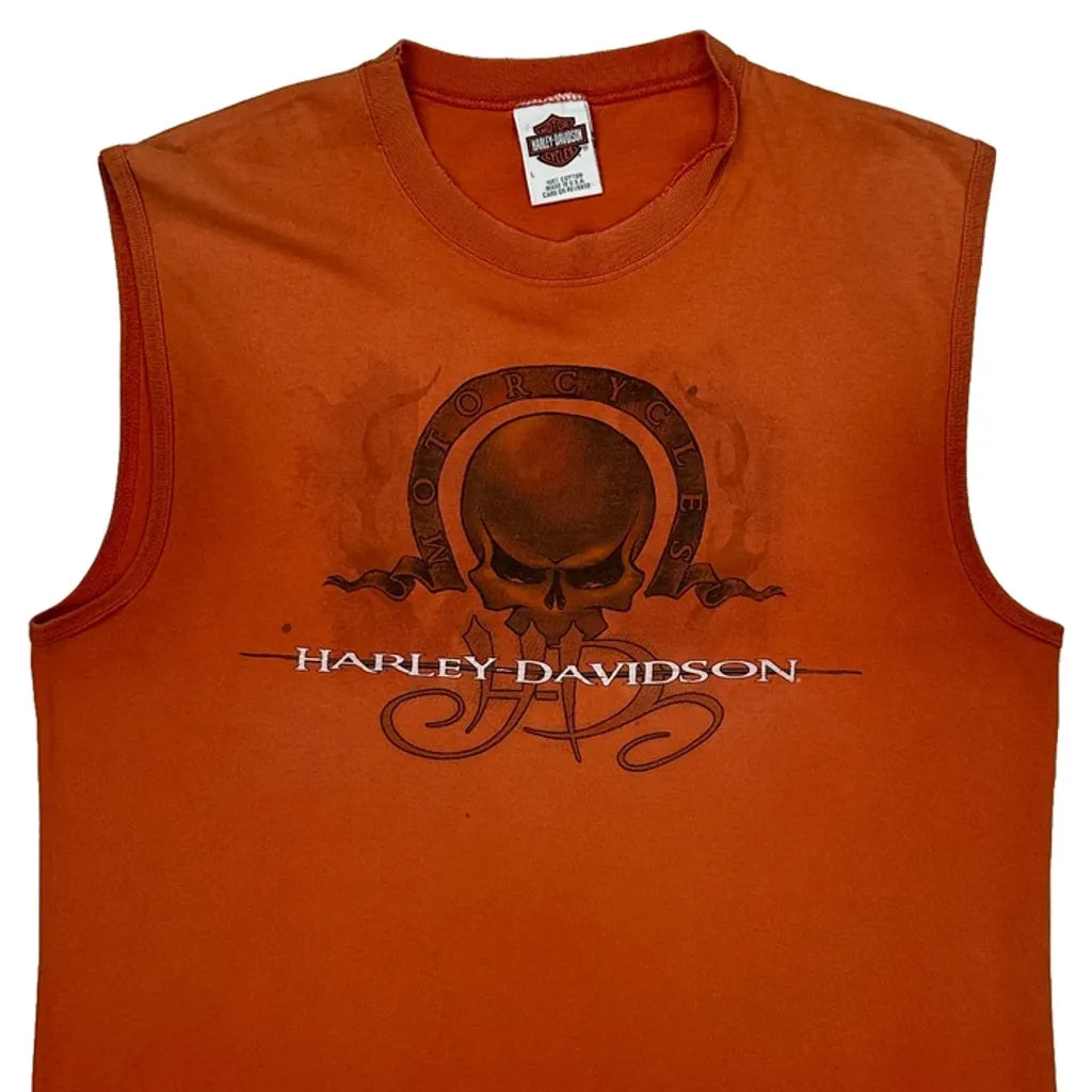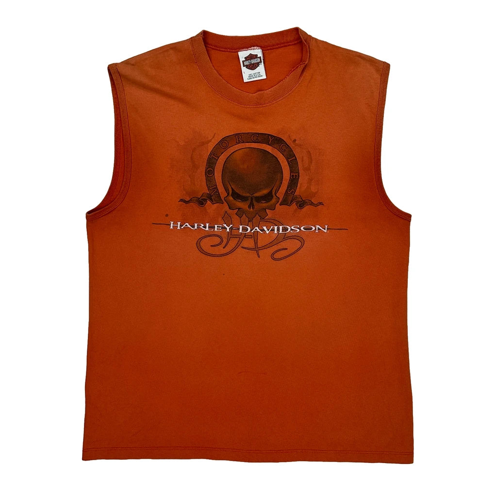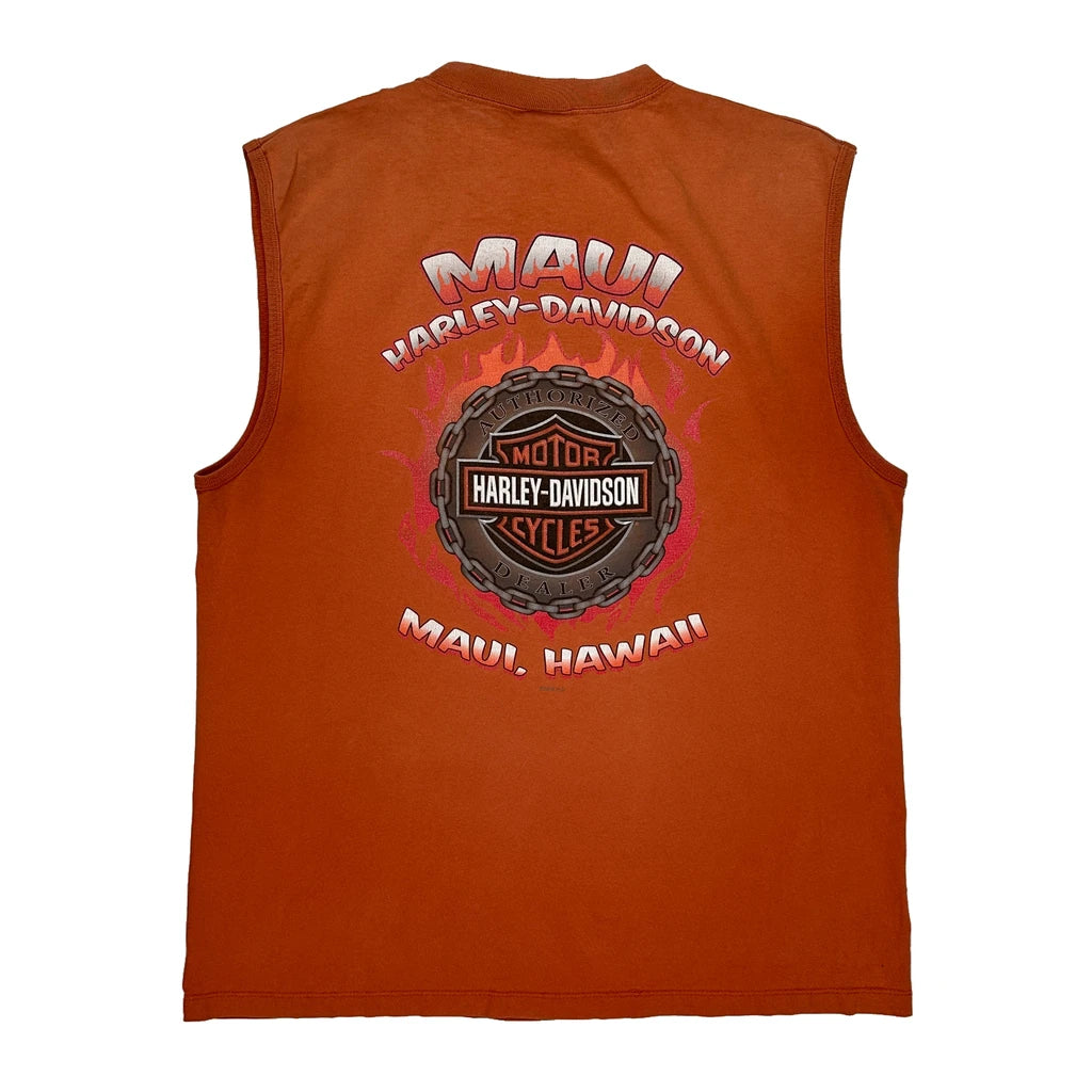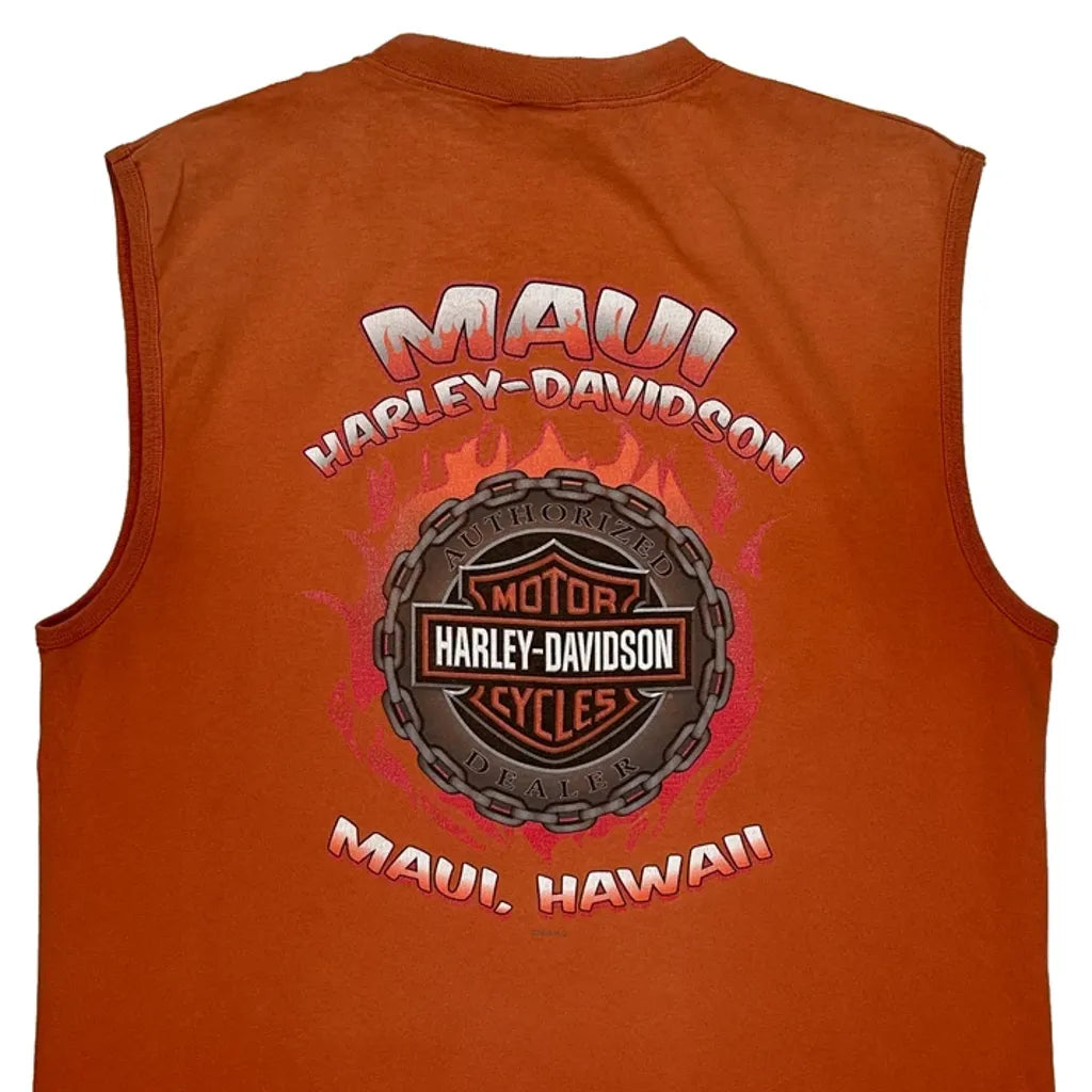 Harley Davidson Graphic Vest - Large Orange Cotton