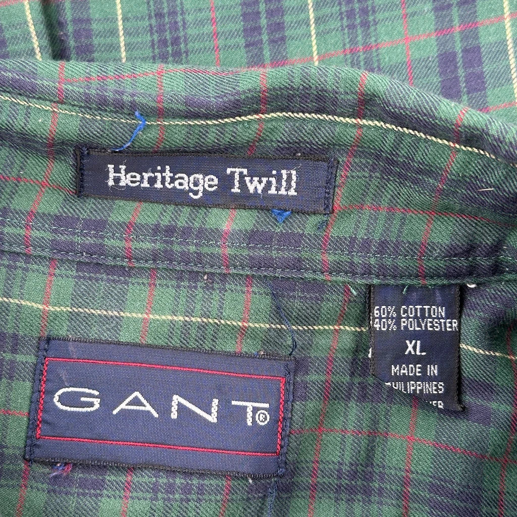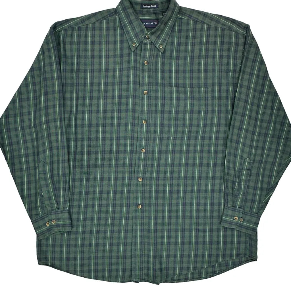 Heritage Twill Gant Checked Shirt - XL Green Cotton Blend