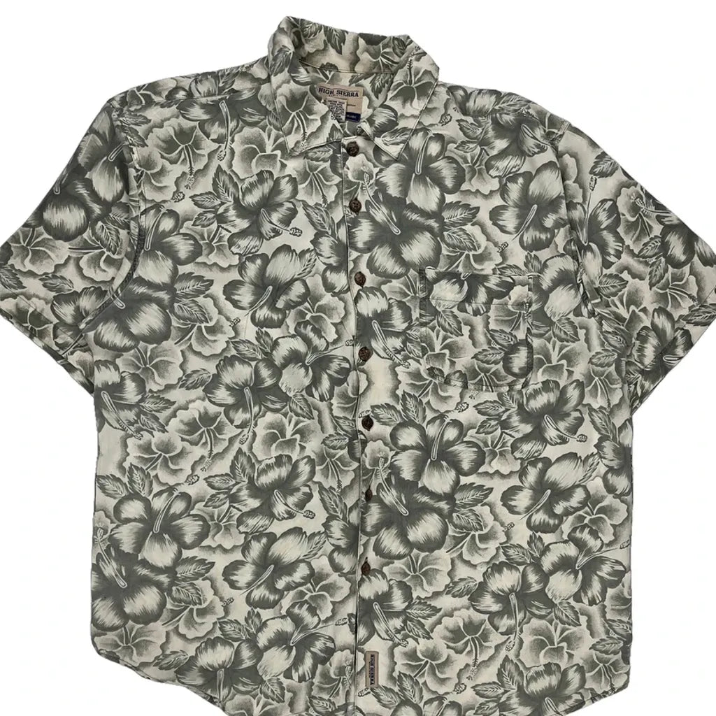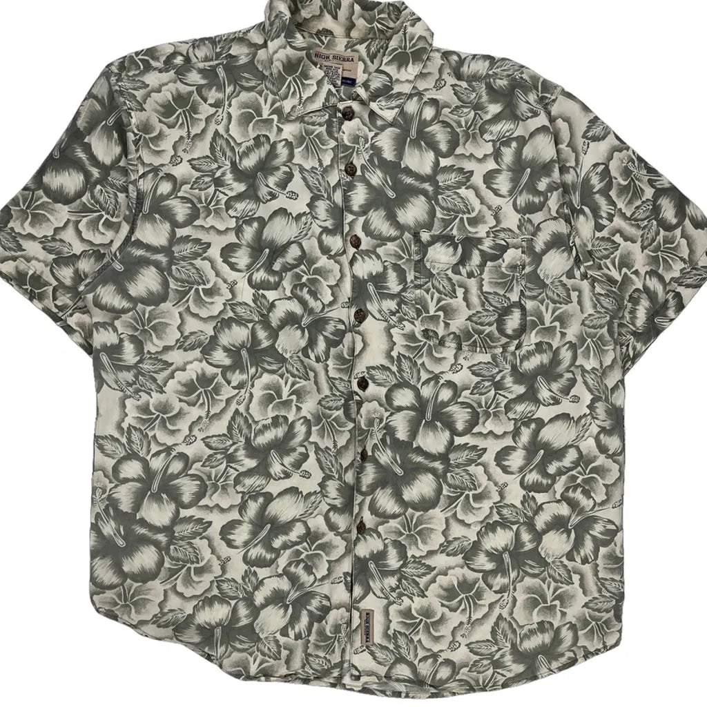 High Sierra Floral Hawaiian Shirt - Large Cream Viscose