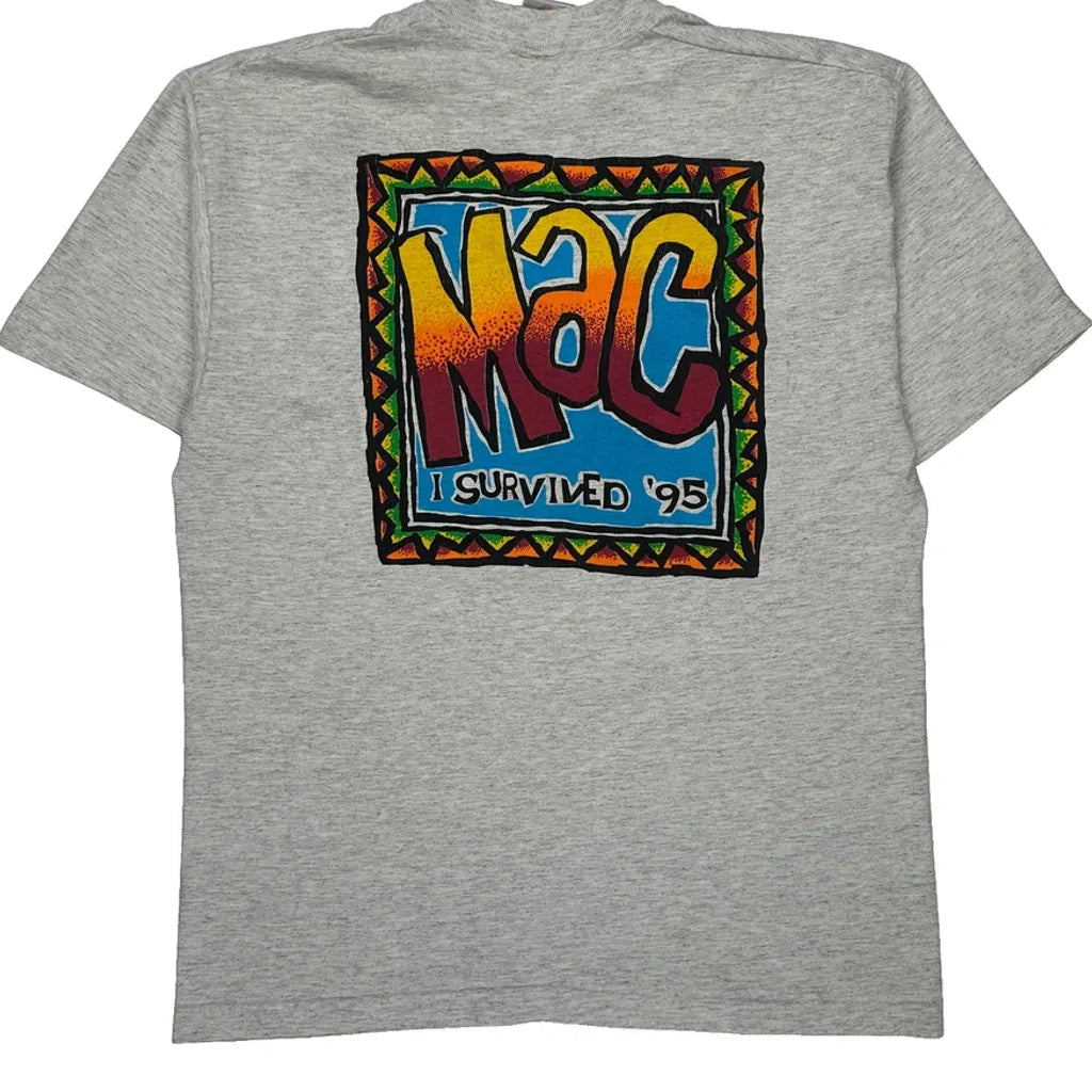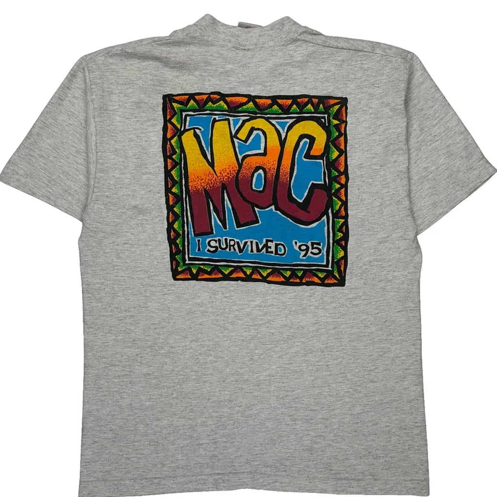 I Survived '95 Fruit Of The Loom Graphic T-Shirt - Large Grey Cotton