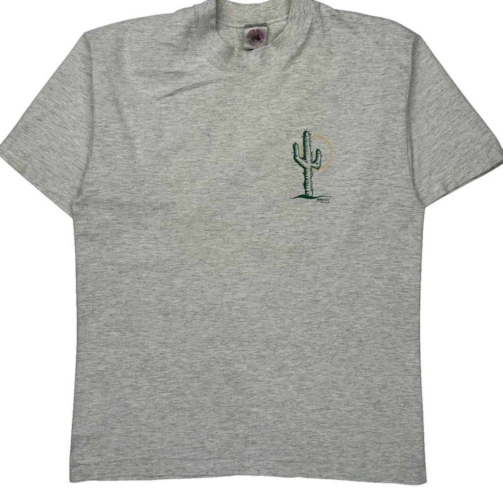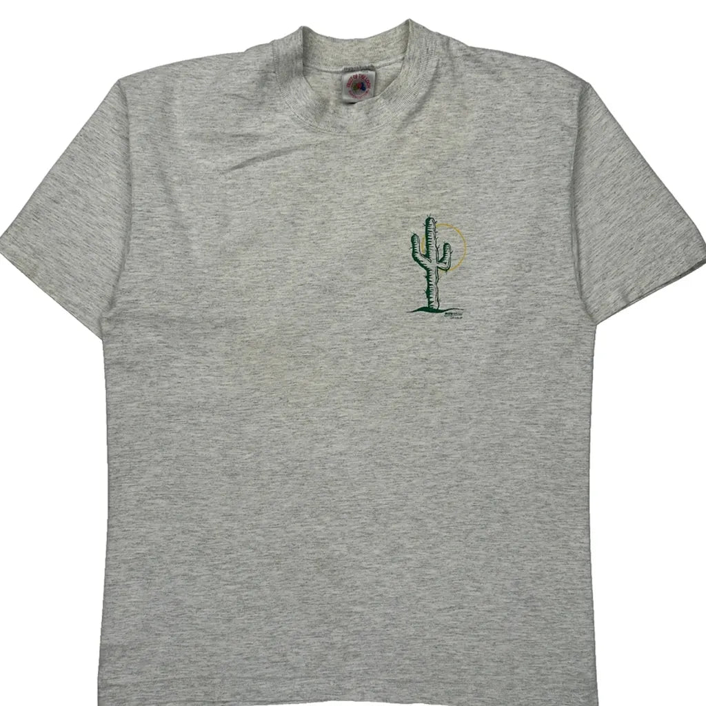 Grey T-Shirt With Cactus Graphic On Front And Colorful Nac Graphic On Back