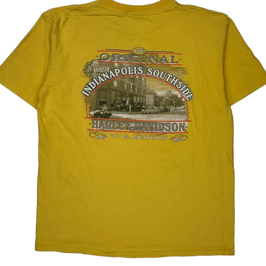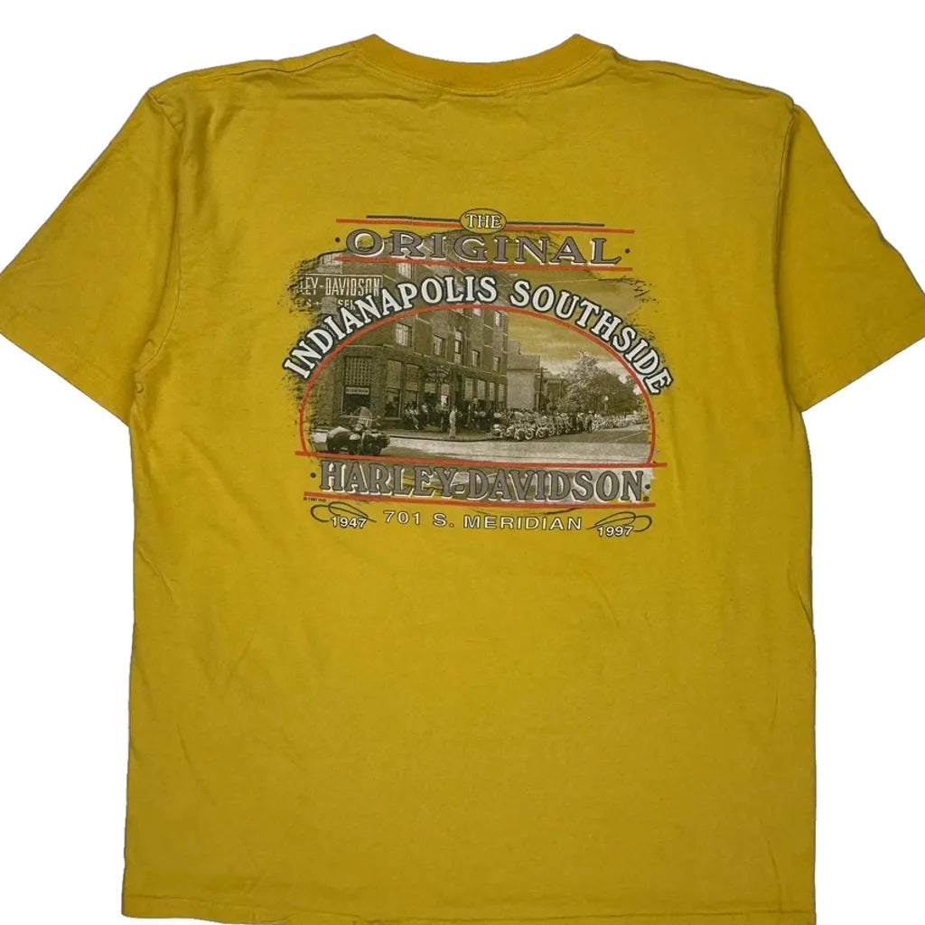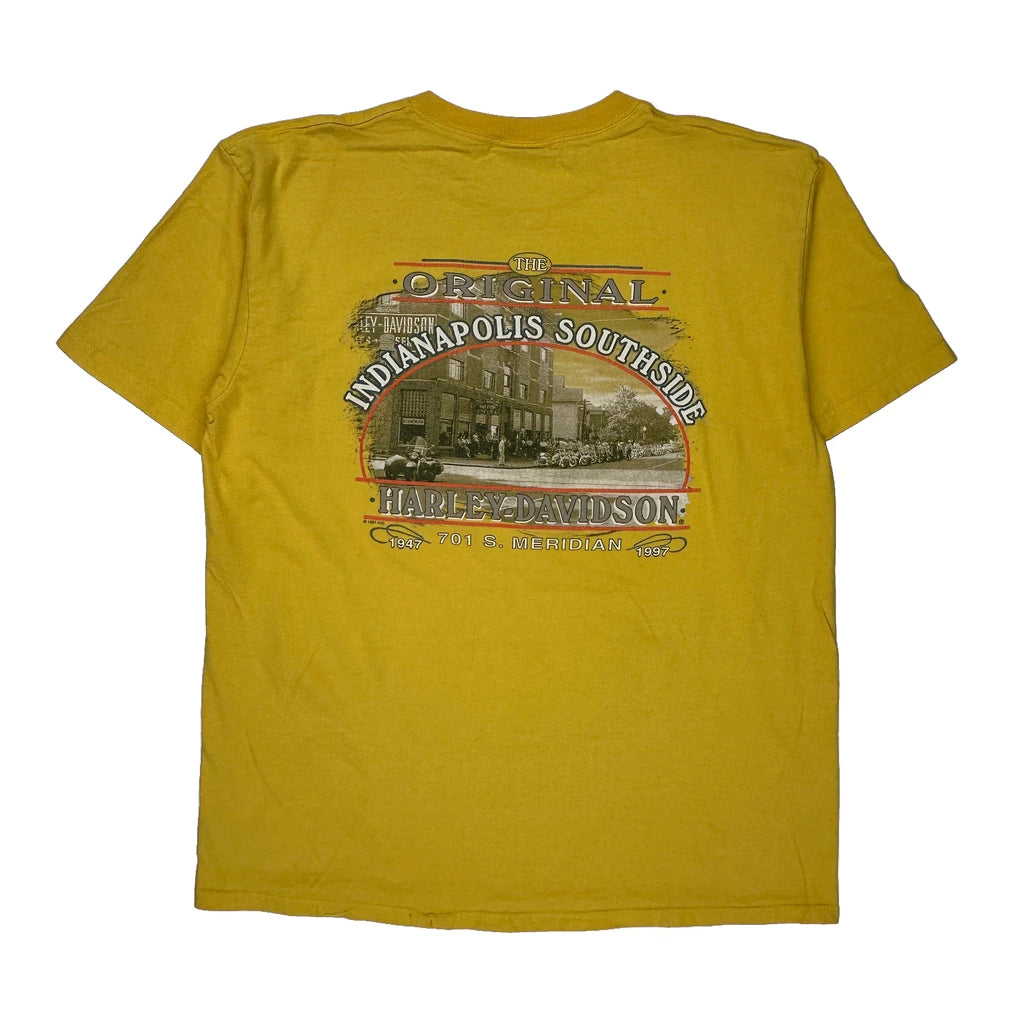 Indianapolis Southside Harley Davidson Graphic T-Shirt - XL Yellow Cotton