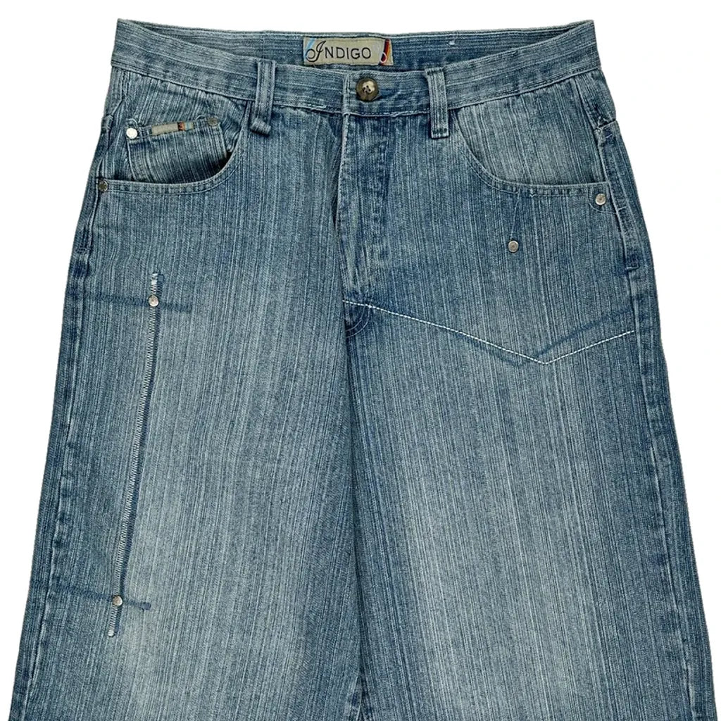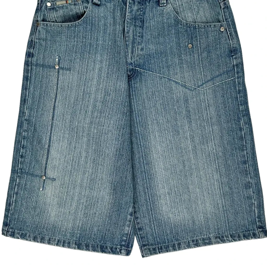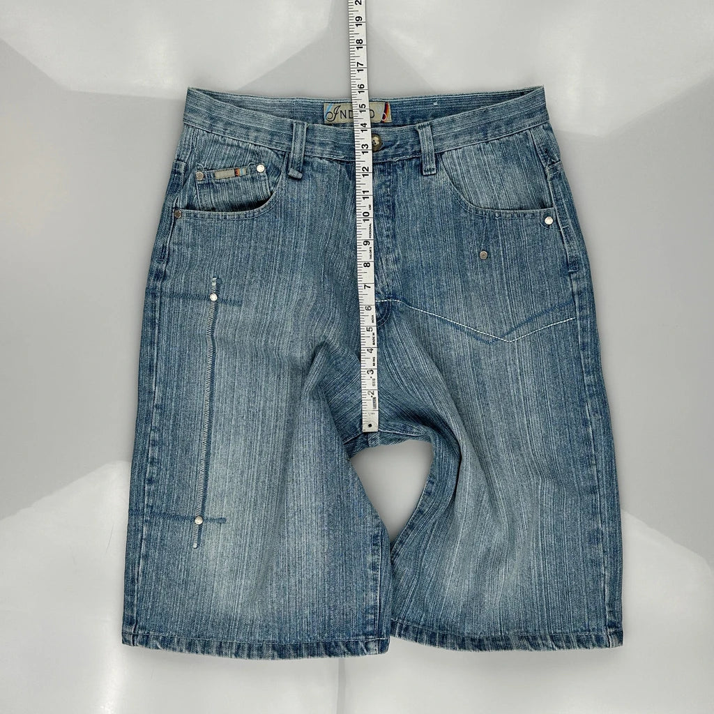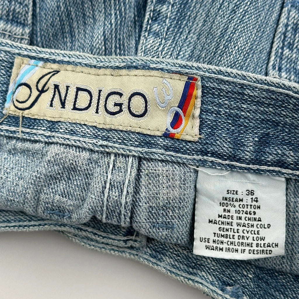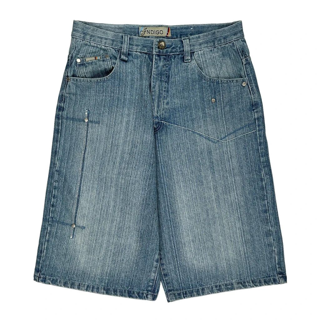 Indigo Denim Shorts - 34W 14L Light Wash Cotton