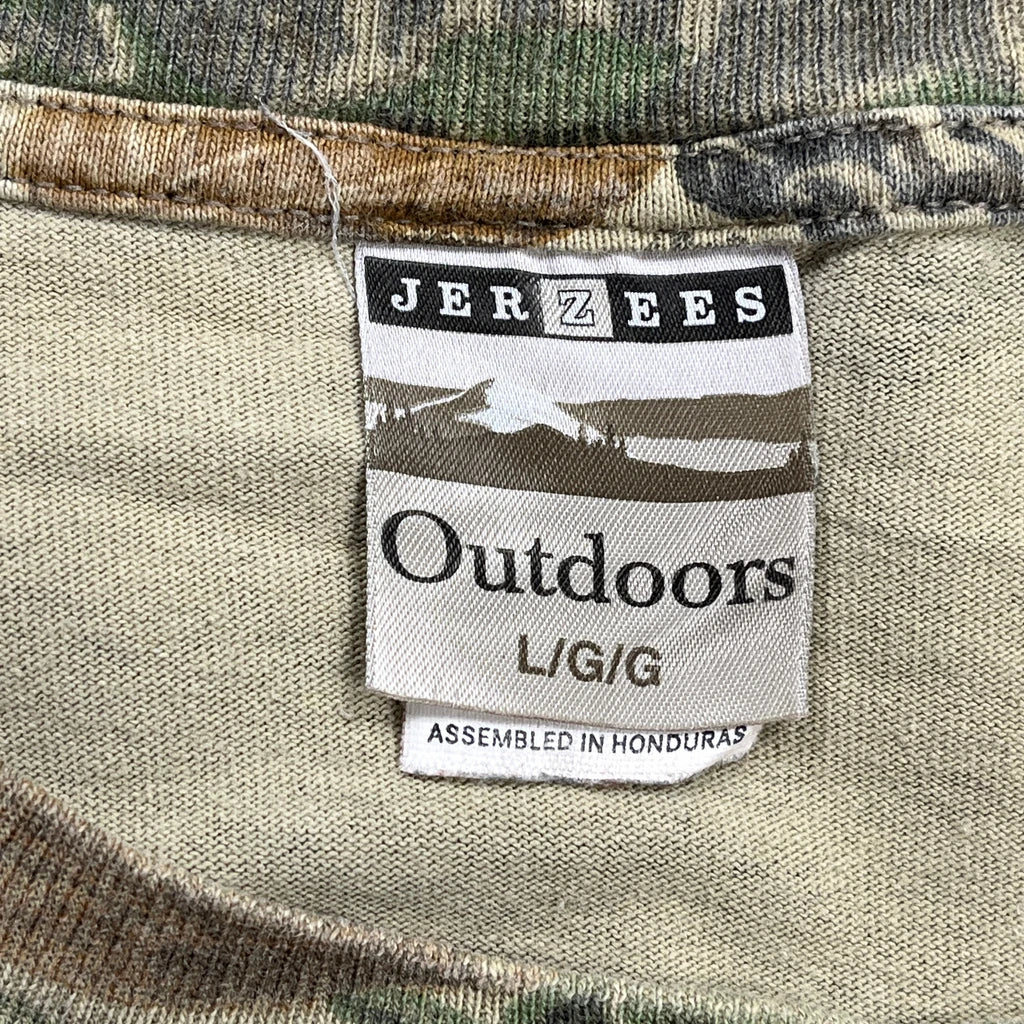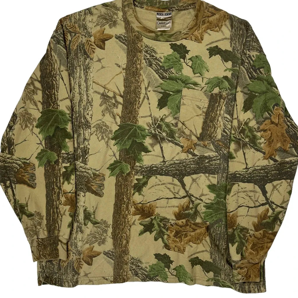 Jerzees Camo Long Sleeve T-Shirt - Large Green Cotton