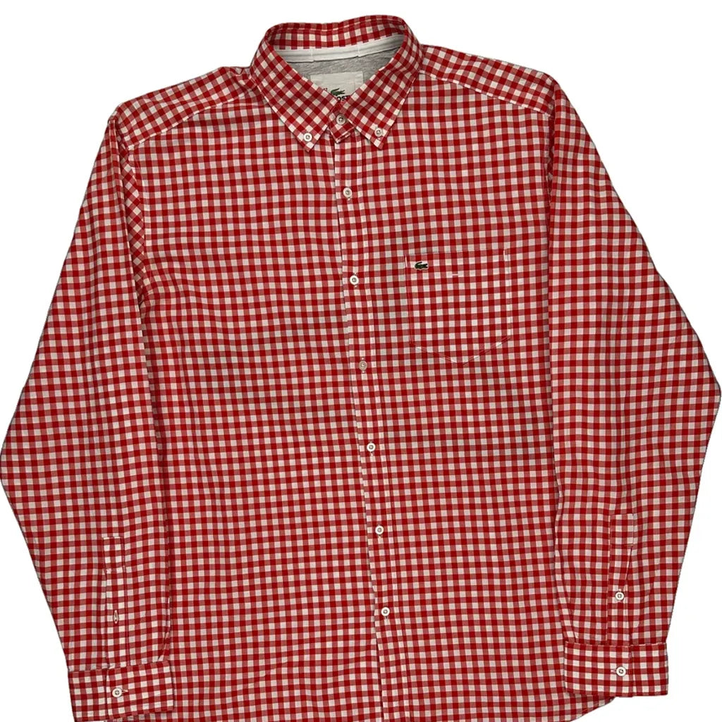 Lacoste Checked Shirt - Large Red Cotton