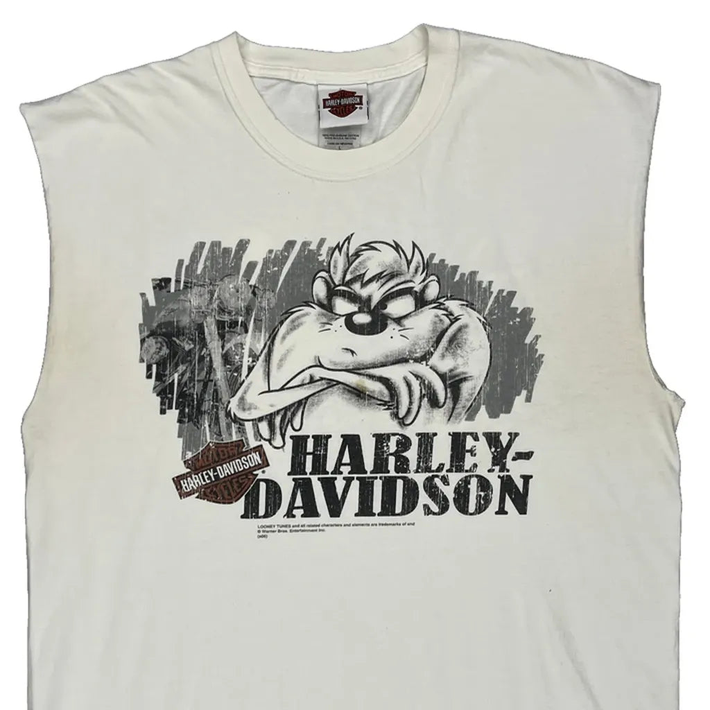 Sleeveless Harley Davidson T-Shirt With Cartoon Graphic