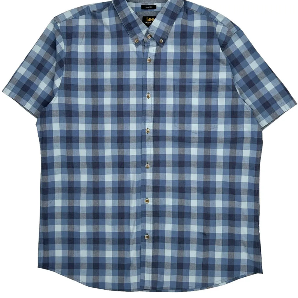 Lee Checked Short Sleeve Shirt - XL Blue Cotton