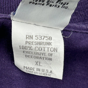 Looney Tunes Six Flags Single Stitch T-Shirt - XL Purple Cotton