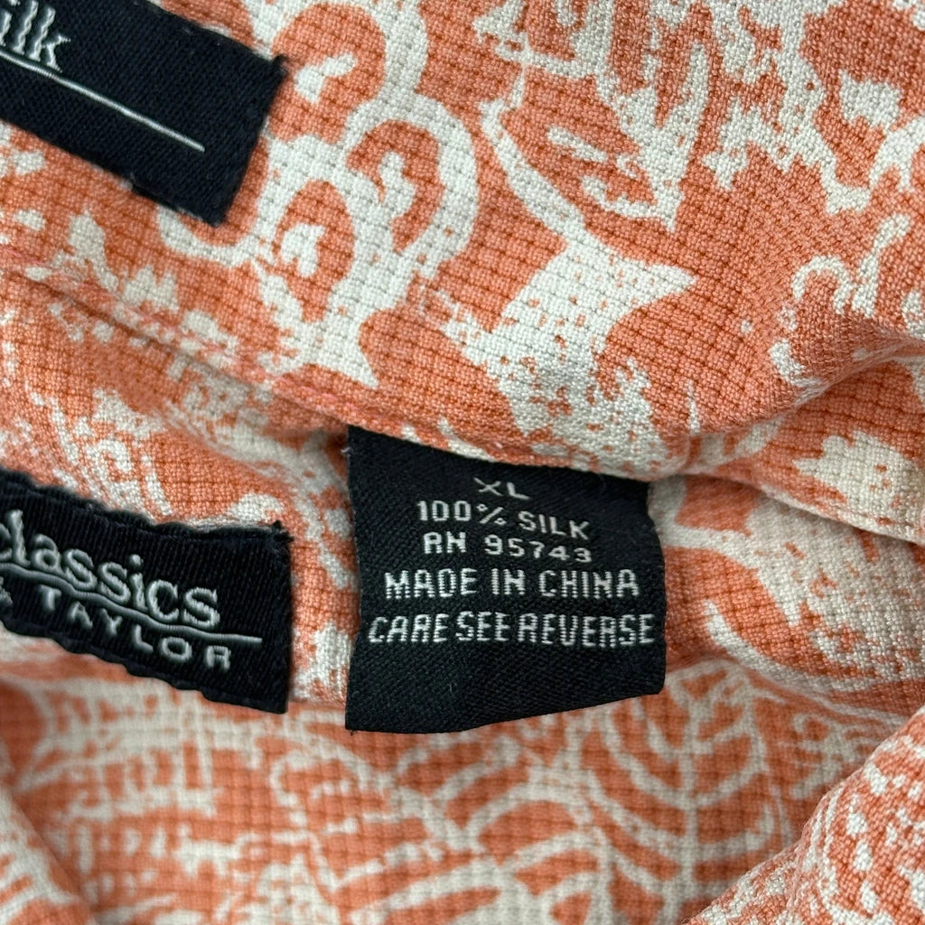Lord & Taylor Floral Short Sleeve Shirt - XL Orange Silk