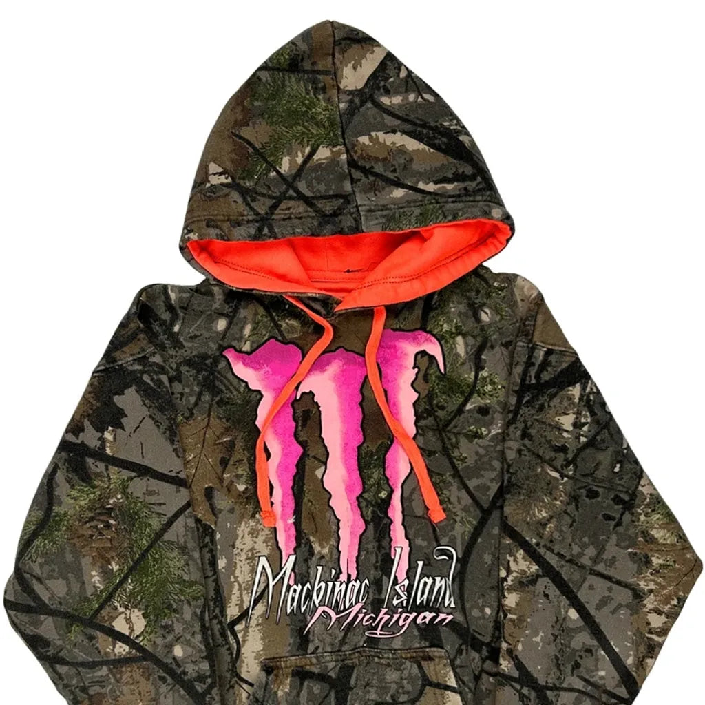 Camouflage Hoodie With Mackinac Island Michigan Text And Pink Graphic