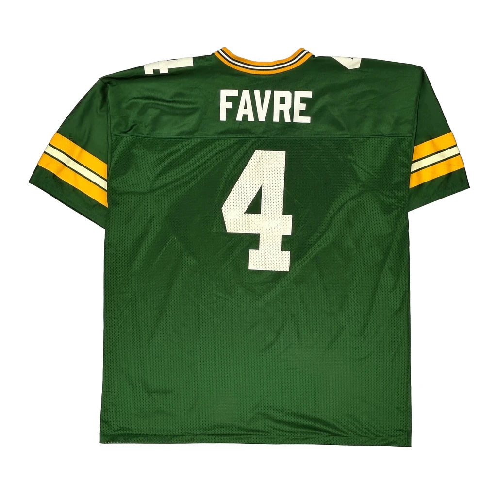 Green Bay Packers Football Shirt With Number 4 And Name Favre On The Back.