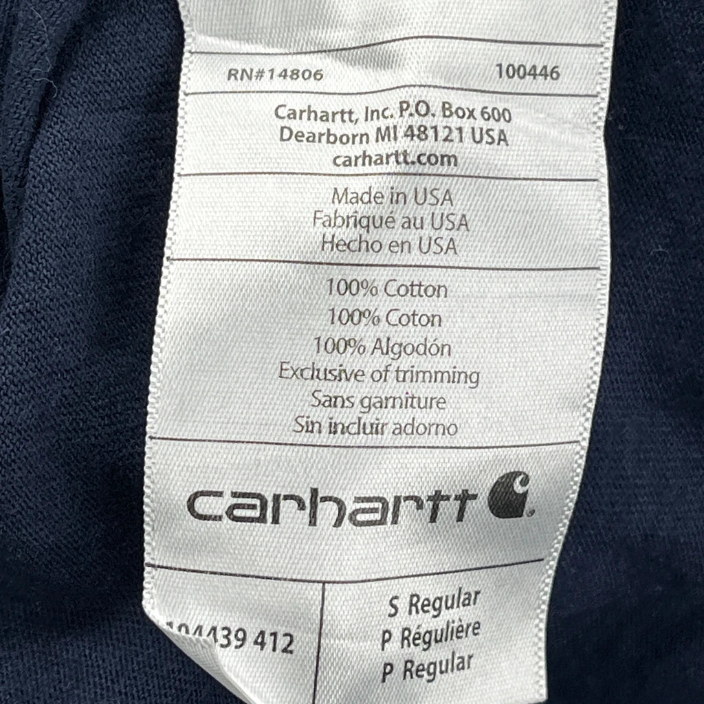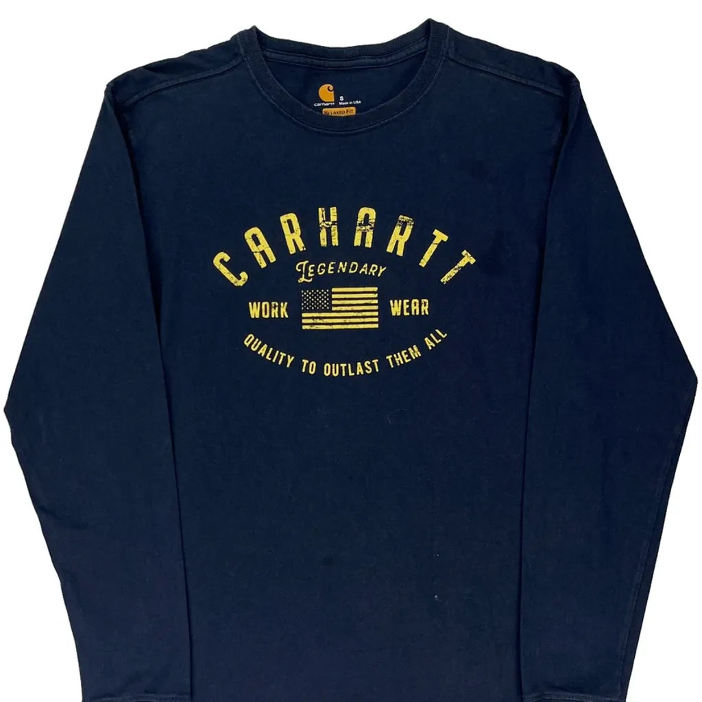 Made In Usa Carhartt Spellout Long Sleeve T-Shirt - Small Navy Cotton