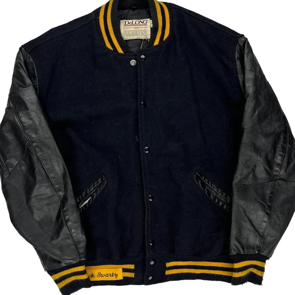 Made In Usa Delong Varsity Jacket - XL Black Wool Blend