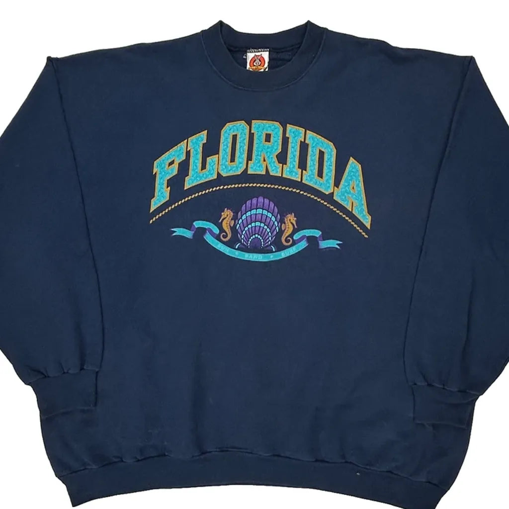 Made In USA Florida Looney Tunes Graphic Sweatshirt - XL Navy Cotton Blend