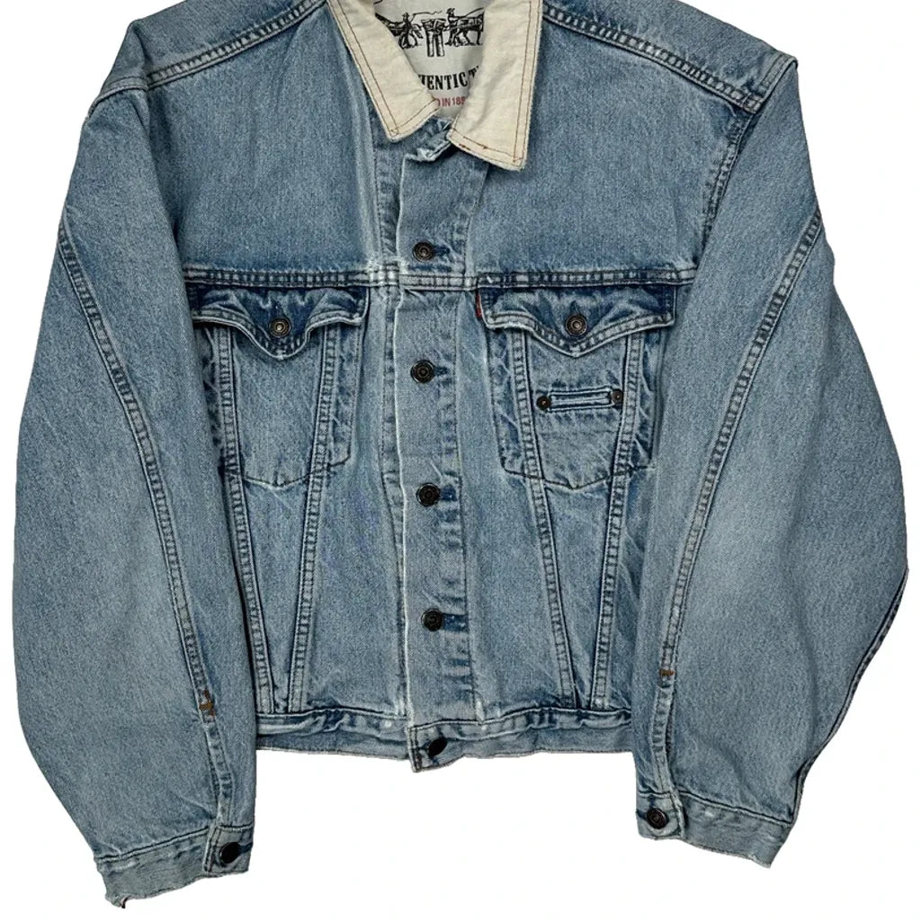 Made In USA Levis Collared Denim Jacket - Medium Light Wash Denim
