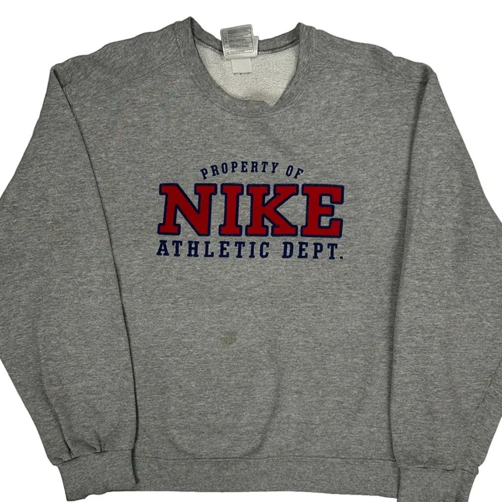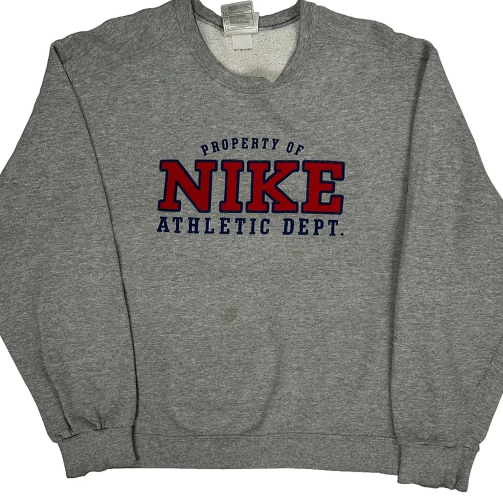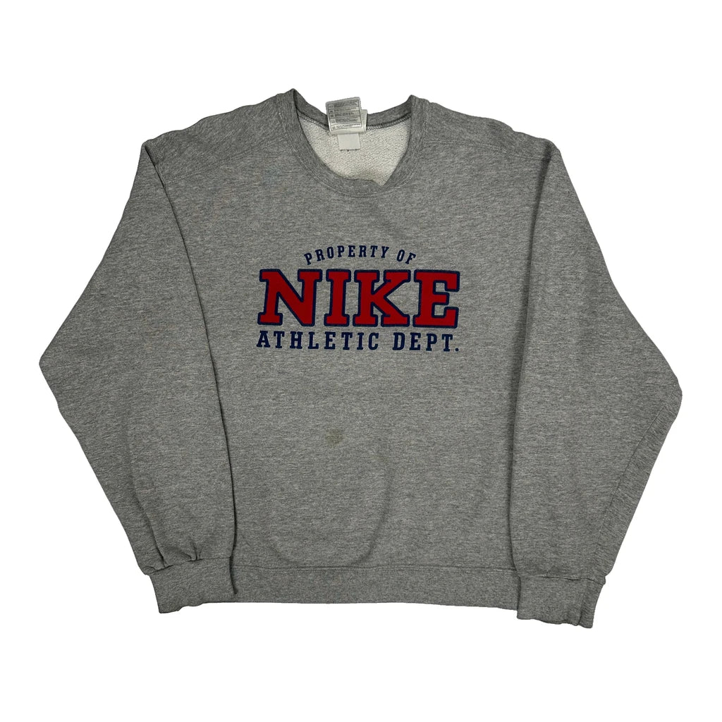 Made In USA Nike College Sweatshirt - Large Grey Cotton Blend