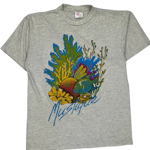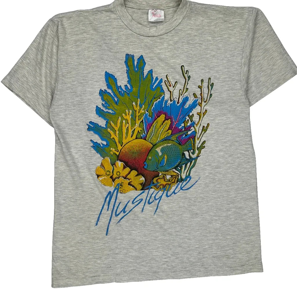 Features A Vibrant Graphic Print Of Underwater Scenery With The Text 'Mustique'.