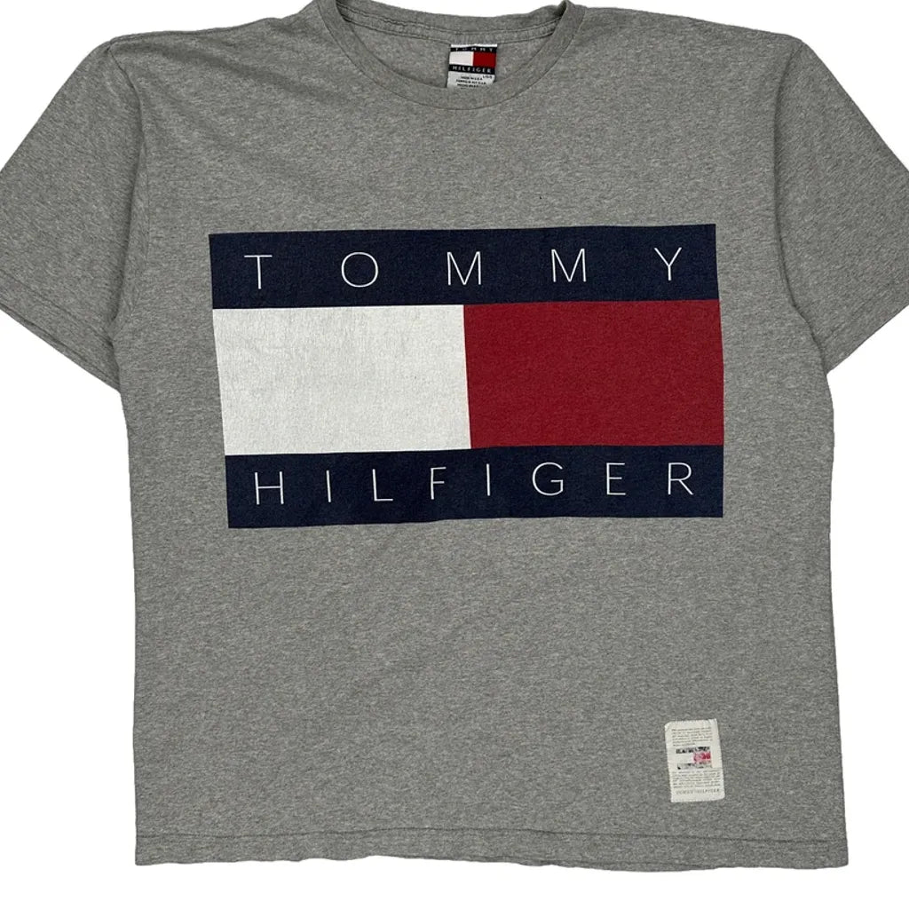 Made In USA Tommy Hilfiger T-Shirt - Large Grey Cotton