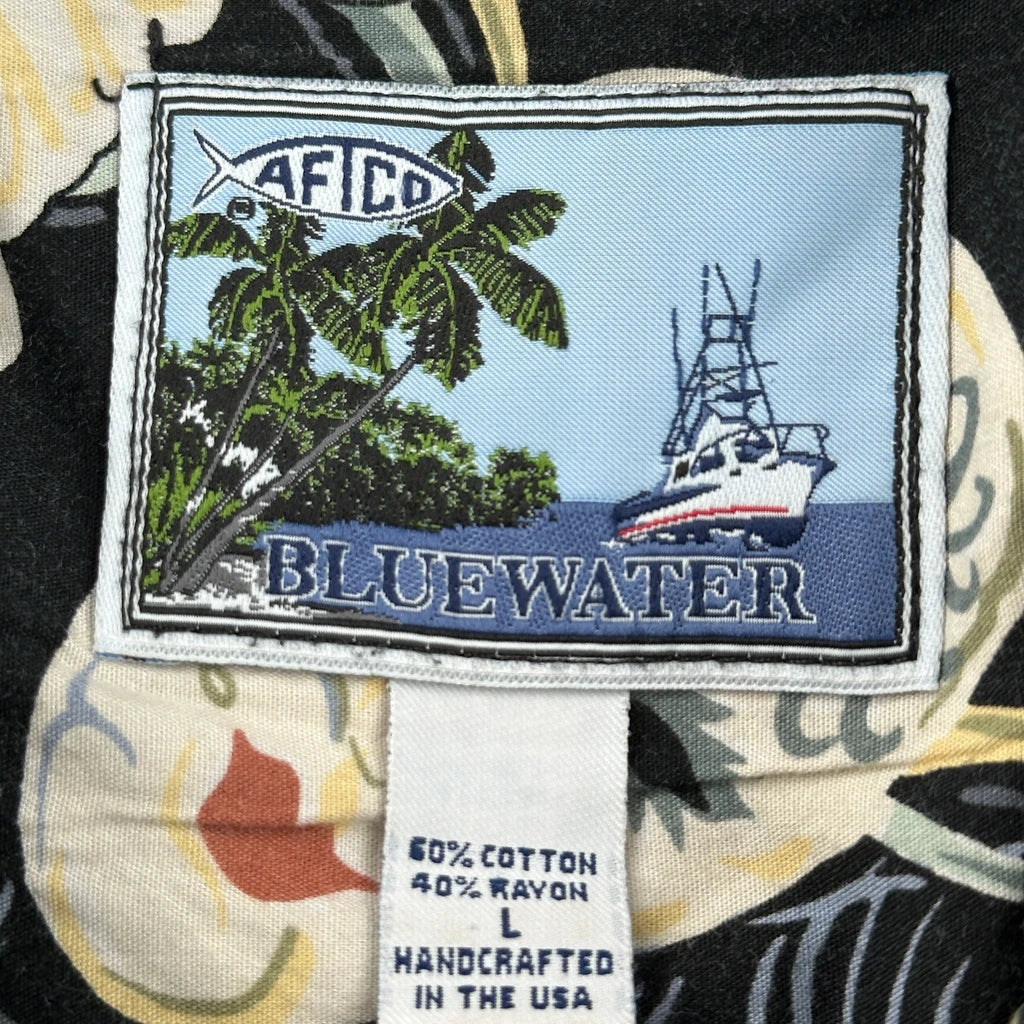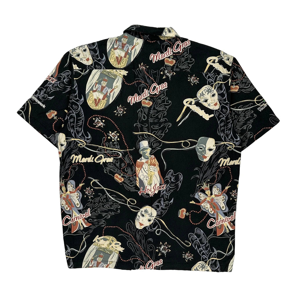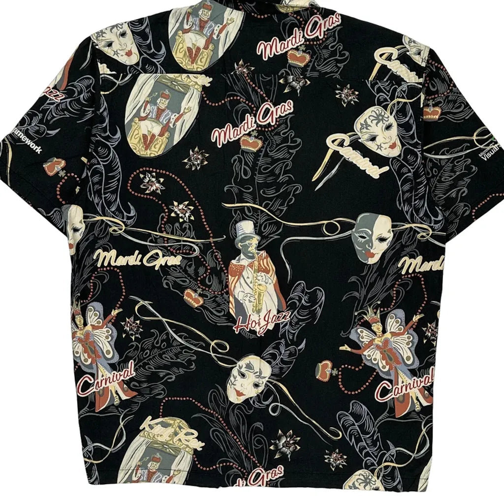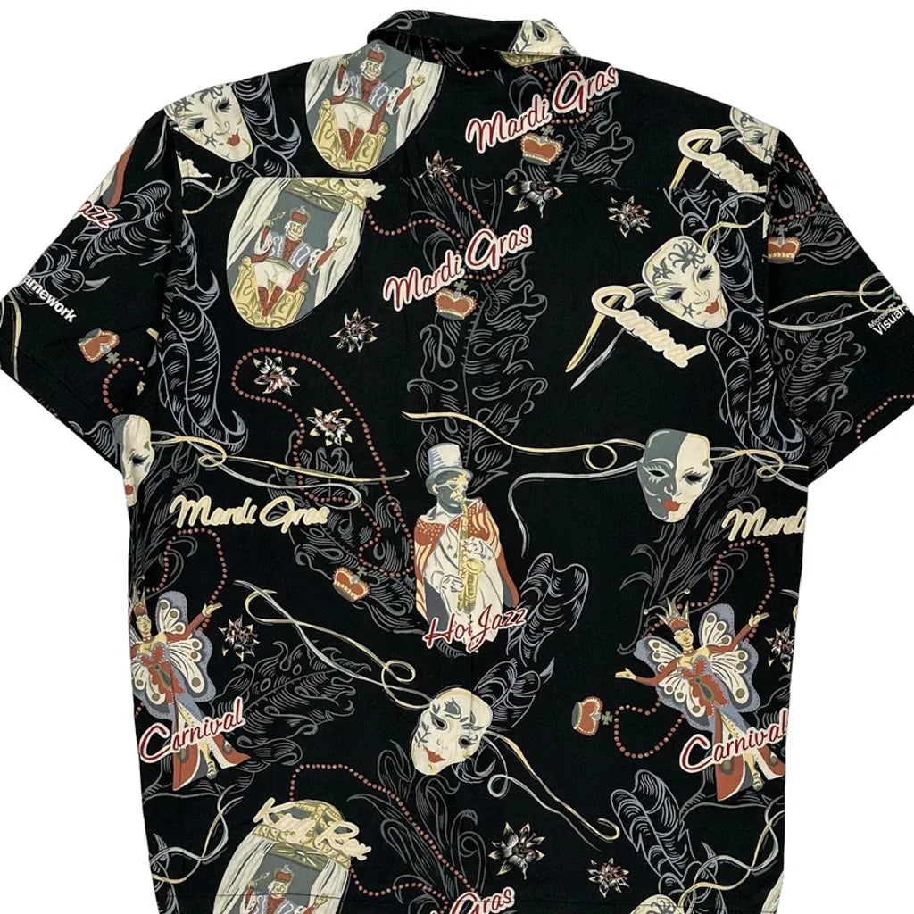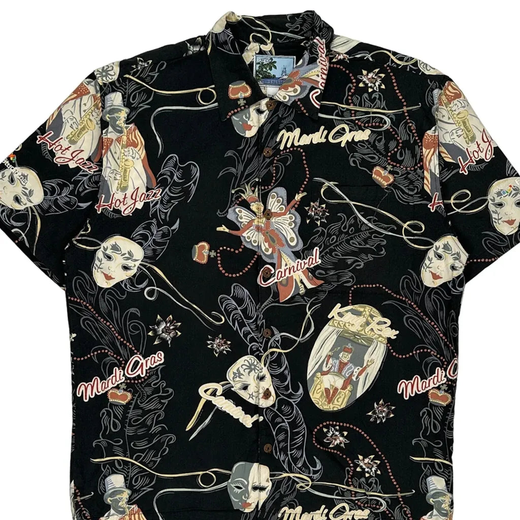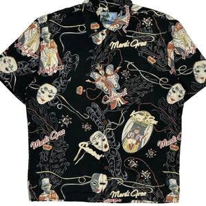 Mardi Gras Bluewater Graphic Hawaiian Shirt - Large Black Cotton Blend