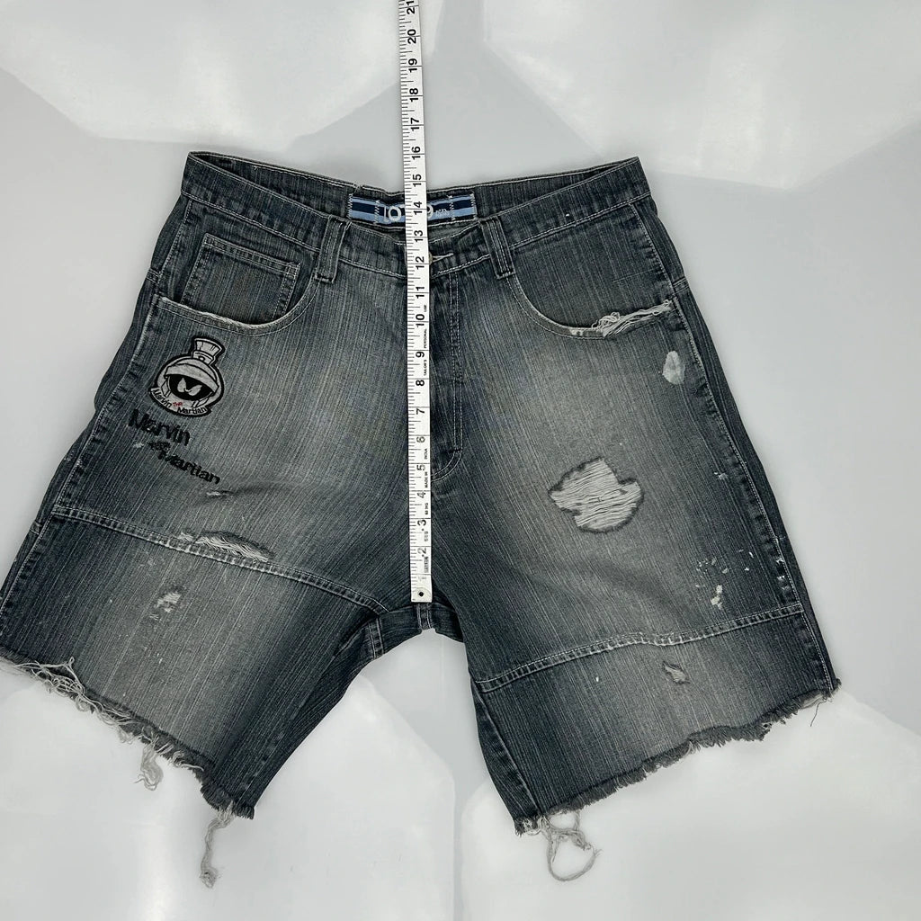 Marvin The Martian Lot 29 Graphic Denim Shorts - 34W 10L Black Denim