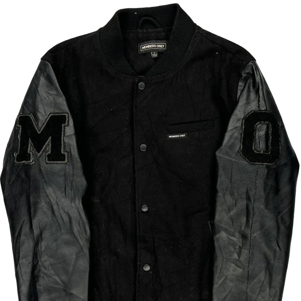 Members Only Varsity Jacket - Large Black Polyester Blend